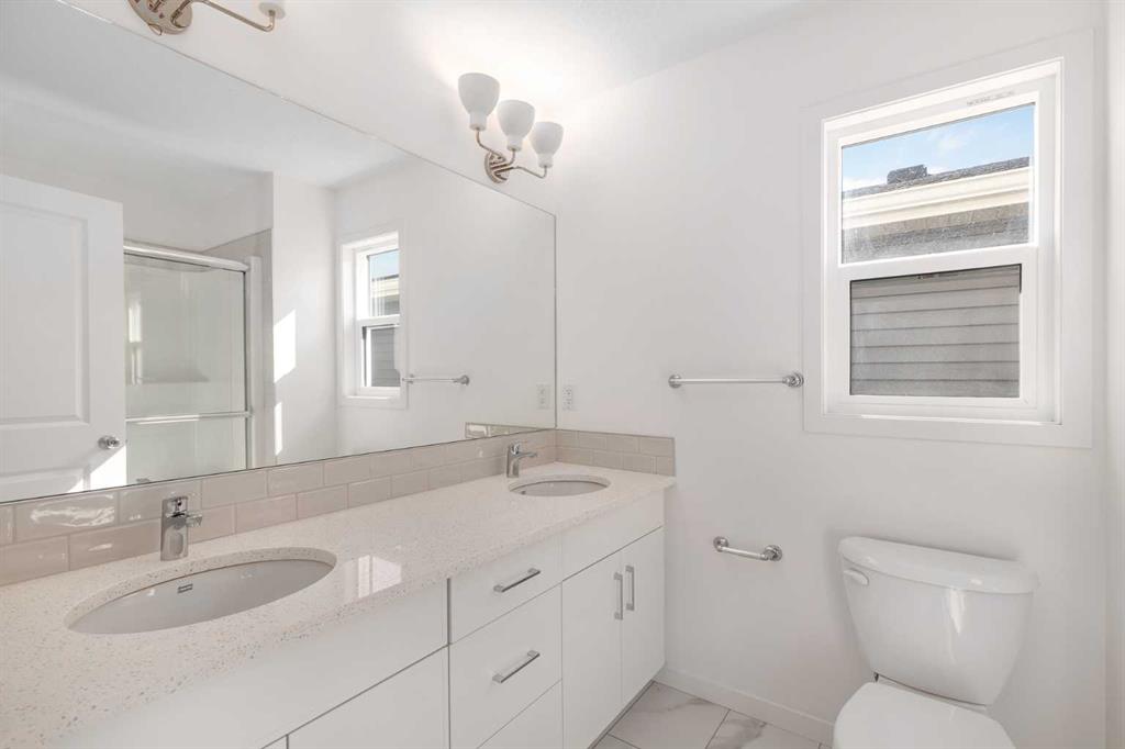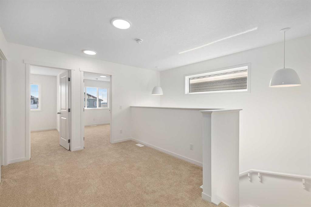 Boxing Day pricing starts NOW — brand-new specs, brand-new savings. Welcome to this brand-new “Lyall” floor plan, a beautifully crafted home that blends modern style with functional design. From the moment you step inside, you’re greeted by soaring 10’ ceilings and warm luxury vinyl plank flooring that flows throughout the main level. At the front, a versatile flex room offers the perfect space for a home office, reading nook, or play area. Moving toward the back, the open-concept living space unfolds with a bright and inviting living room, complete with an elegant electric fireplace, an oversized dining area ideal for family gatherings, and a stunning kitchen that serves as the heart of the home. The kitchen is a true showpiece, featuring timeless white cabinetry extended to the ceiling, quartz countertops, a hammered white subway tile backsplash that wraps around the sleek range hoodfan, stainless steel appliances, and a spacious island—perfect for both everyday meals and entertaining. Upstairs, a central loft provides a flexible second living space and creates separation between the primary suite and the additional bedrooms. The staircase is highlighted with modern black spindle railing, adding a contemporary touch to the home’s design. The spacious primary retreat includes a walk-in closet and a spa-inspired 4-piece ensuite with dual sinks. Two more bedrooms, a full 4-piece bathroom, and a convenient upper laundry room complete this level. The fully finished basement adds incredible value with two additional bedrooms, a large rec room, and a 4-piece bathroom. With a separate entrance, it’s roughed in for a wet bar and extra laundry. **This home also comes complete with full front and backyard landscaping, including sod, mulch on the side yards, and trees/shrubs in the front as per community guidelines. Located in the growing southeast community of Hotchkiss, this home offers more than just a beautiful interior. Residents here enjoy a family-friendly setting with scenic pathways, green spaces, and quick access to major routes like Stoney Trail and Deerfoot. You’re also just minutes away from the amenities of Seton, including restaurants, shopping, the South Health Campus, and recreation options. This is your opportunity to own a brand-new, move-in ready home in one of Calgary’s up-and-coming communities—complete with a finished basement and high-end upgrades that make it truly stand out.