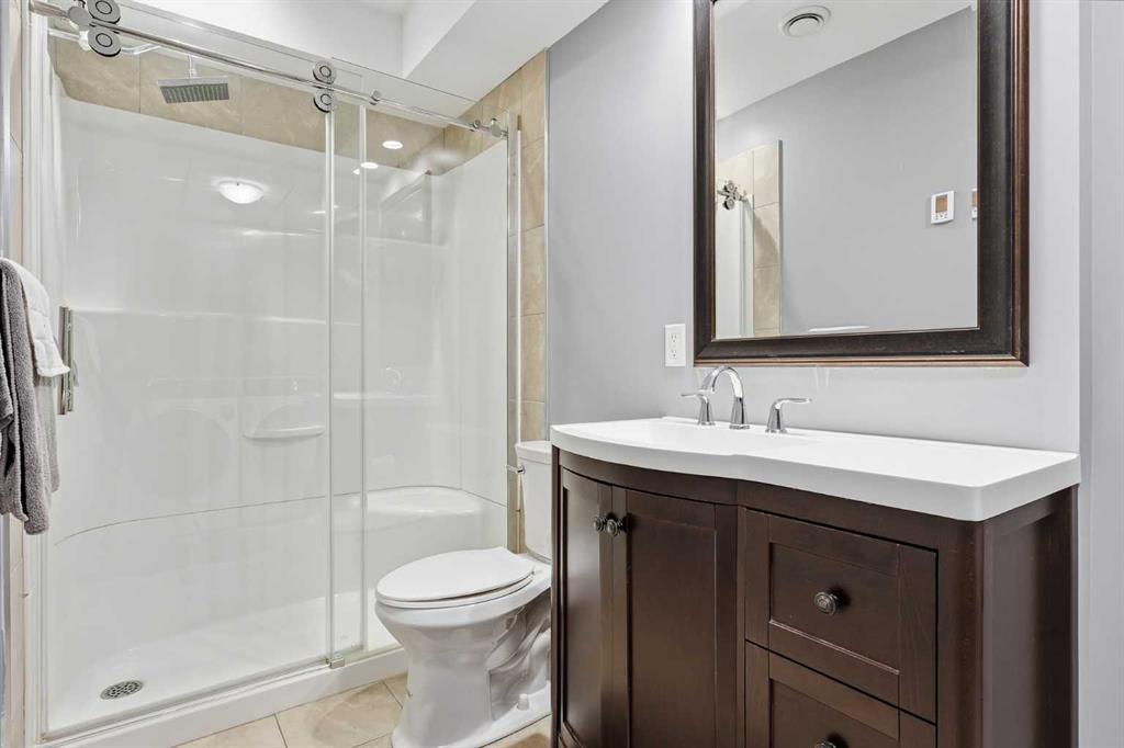 The fully developed basement has a full bathroom and laundry room combo, adding