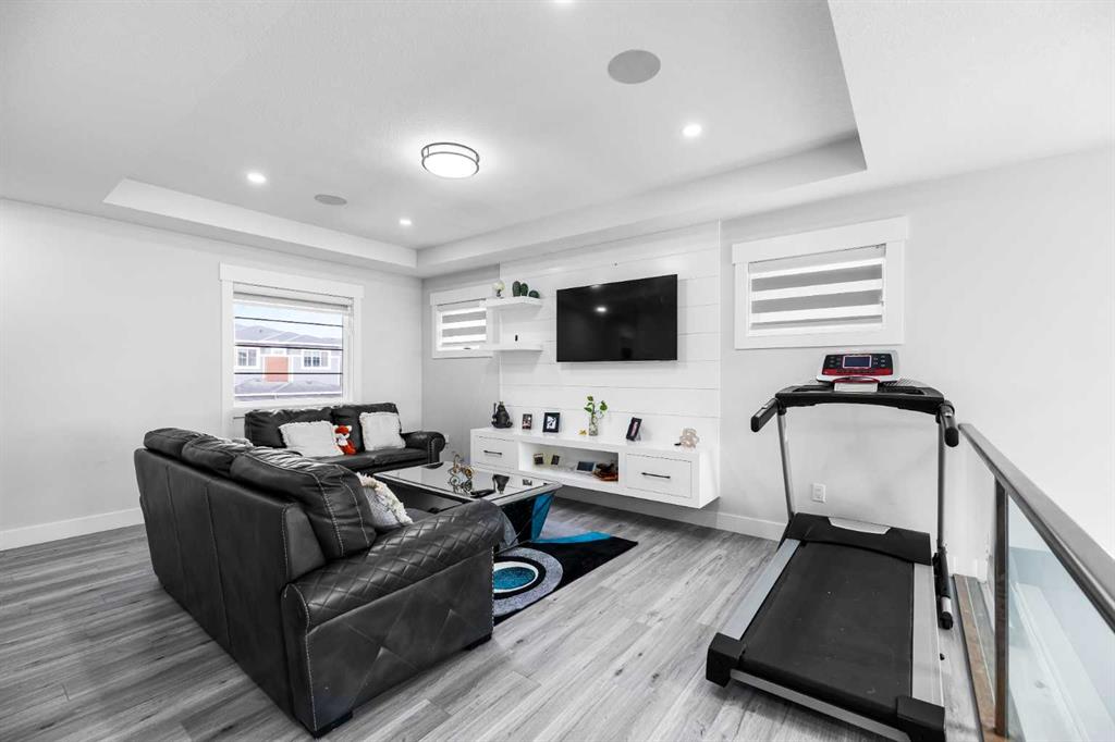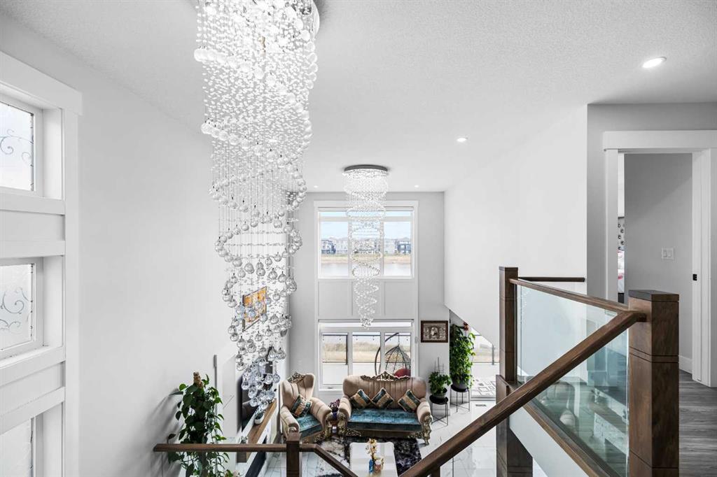 Experience waterfront luxury in this recently completed custom build on a premium, extra large 50-ft walkout lot. Backing onto tranquil waterfront and scenic pathways in Chestermere’s Waterford community, this home showcases over 4,500 sq ft of living space, and $150K in premium builder upgrades. The main level features large format polished marble tile, a chef’s kitchen with maple cabinetry, marble countertops, and a spice kitchen fully equipped with upgraded appliances. An elegant living area with gas fireplace, beautiful open-tread staircase, and a full width glass-railed deck overlooking the water. Upstairs includes a family room overlooking the open-to-below great room, four bedrooms, a spa-inspired primary ensuite, a junior primary with ensuite, and large laundry with a sink and extra storage. The walkout 2 bedroom basement is a legal secondary suite, fully developed by the builder to match the professional craftsmanship of the upper levels—perfect for multi-generational living or rental income. Complete with a triple car garage, dramatically impressive lighting upgrades, and extensive maple millwork and custom feature walls, this home defines modern waterfront living in Chestermere.