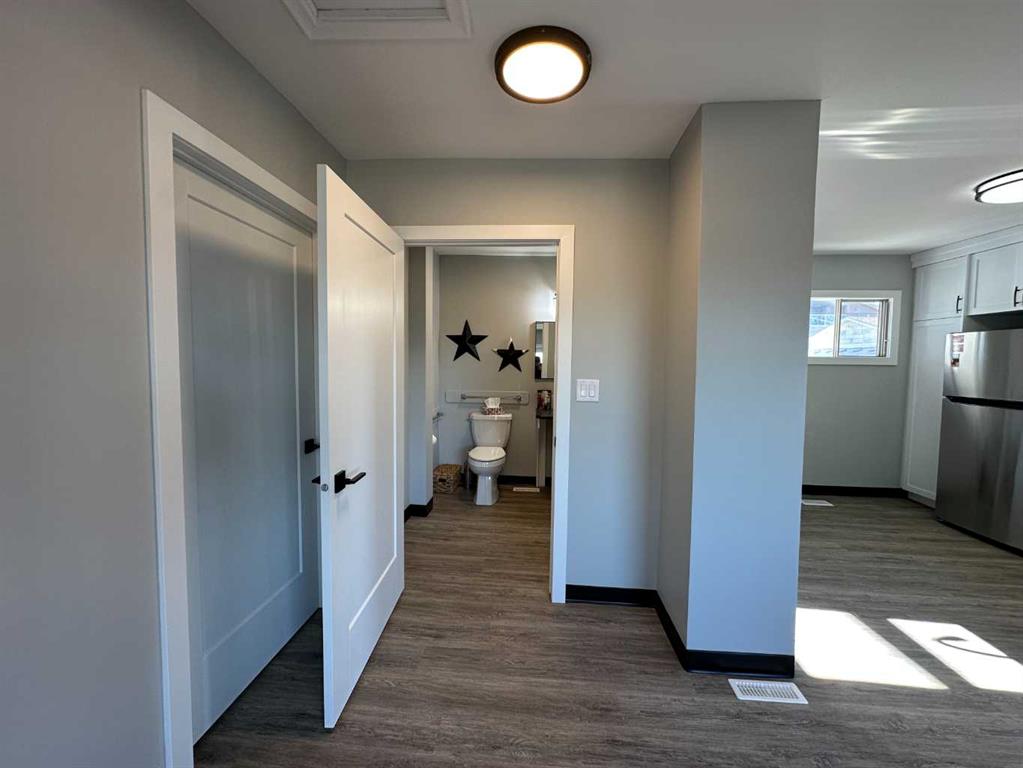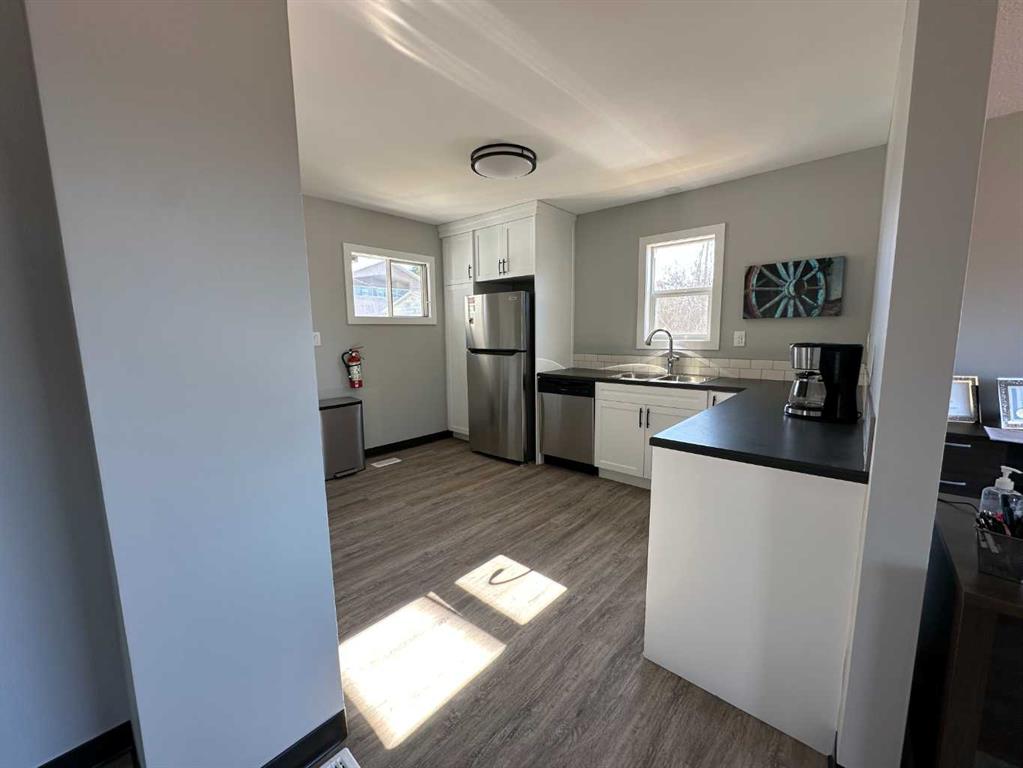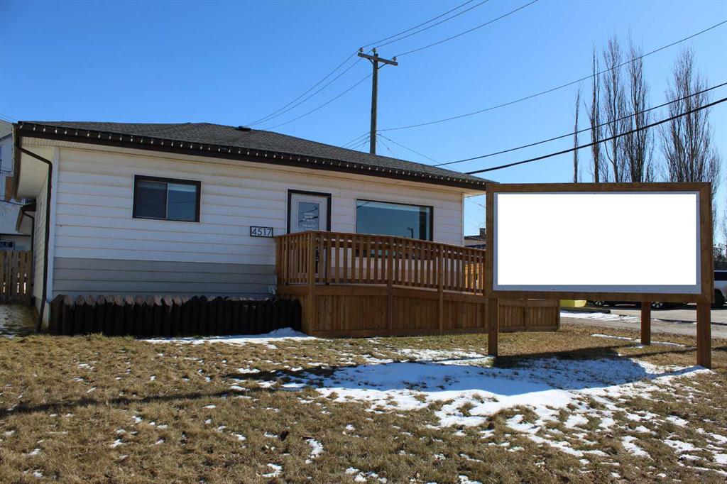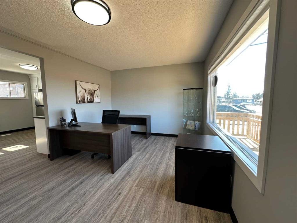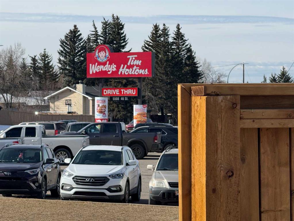 Incredible location for your business or next commercial investment property directly across from the Tim Horton’s drive-thru window & hi-vis from Hwy 27 in Olds, Alberta! Make the investment and set up your business & yourself up for success with superior visibility & arguably the highest vehicle counts and walk traffic in town. Multiple Potential Uses – professional services / retail / food services / storage ect. (with approved use change). NEWLY RENOVATED Highway Commercial Office Building – renos completed in fall 2024 – reception area, 2 office spaces, washroom, and kitchen all with new flooring, paint & baseboards, kitchen counter tops, cabinets, sink, stainless appliances, wheel chair accessible bathroom, emergency lighting, wheel chair ramp, and addition of new 3 stall parking pad (off the south side alley) along with the original 2 car concrete pad in front of garage (5 off street parking total). Front door access off off wheel chair ramp and side door breezeway access. Heated breeze way (employee break area with basement access) & 16’x24′ attached garage are great for storage or can be further developed to add more public facing space. All renovations to code, and all required development permits and licensing for commercial office space completed in 2024. Lot is 6598 sq.ft. – lawn grass frontage with large v-shaped permitted signage. Lawn grass area in the rear great for outdoor break, picnic, or smoking area for employees or for future add-on building expansion. TELUS PureFIbre internet is now available to this office. If you have a desire get into commercial leasing or have a professional service/retail to provide to Olds and surrounding areas you need to give this opportunity serious consideration!