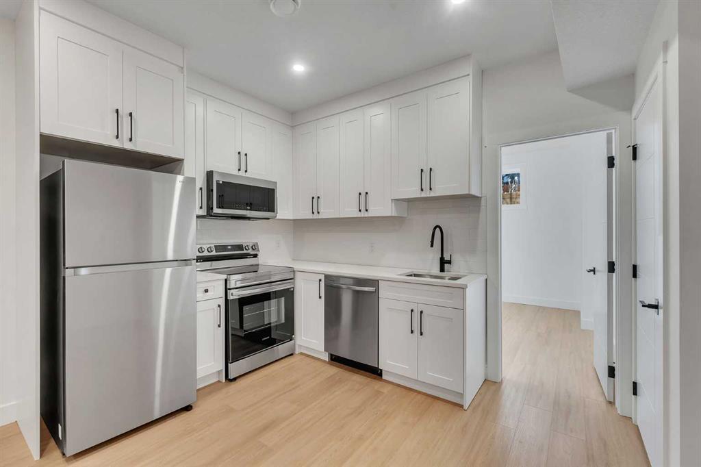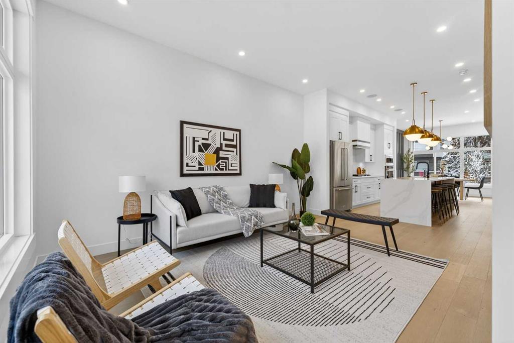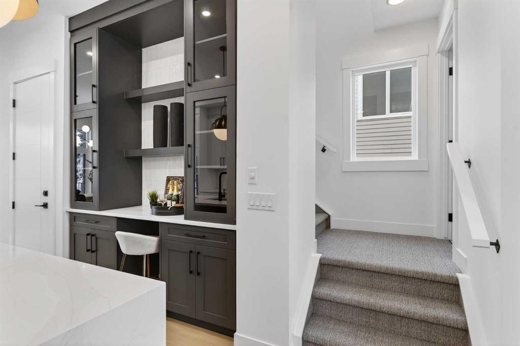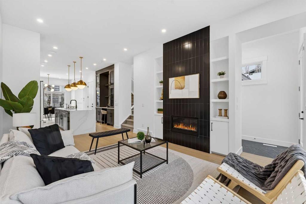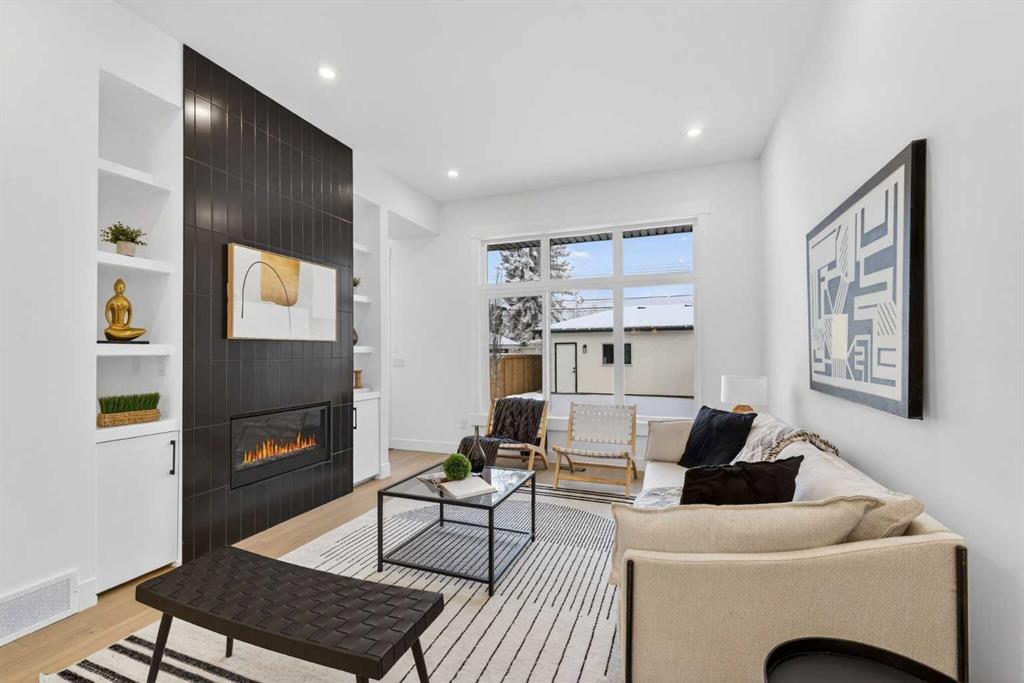 Welcome to Winston Heights Mountview! This modern infill comes with a legal basement suite with its own entrance and offers over 2400 sq. ft. of finished space. It features 5 bedrooms and 3.5 bathrooms, with high-end finishes throughout. The main floor has 10’ ceilings, big windows, an open dining area, and a stylish kitchen with quartz counters, a large island, and KitchenAid stainless steel appliances. The living room includes a gas fireplace, built-in shelves, and access to the patio. Upstairs you’ll find the primary bedroom with a 5-piece ensuite and walk-in closet, plus two more bedrooms, a full bathroom, and laundry. The basement has 9’ ceilings and a fully legal 2-bedroom suite with its own kitchen, living space, and laundry—great for family or rental income. This home also includes a double garage, downtown views from the front, and an excellent location close to schools, parks, shops, and just minutes from downtown. One of biggest backyards in this area.