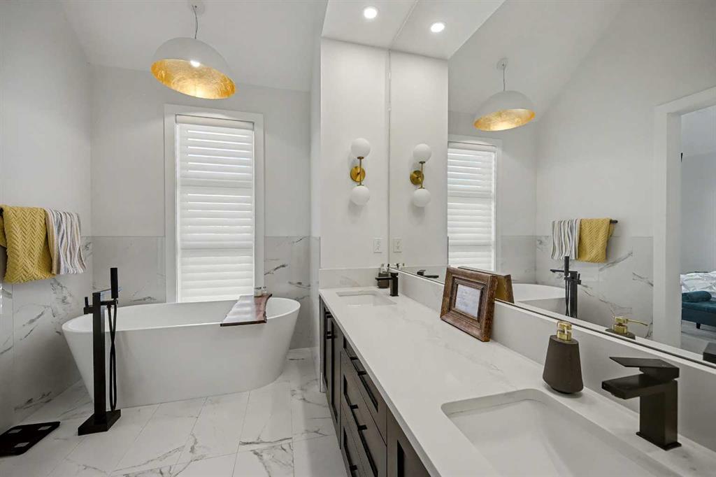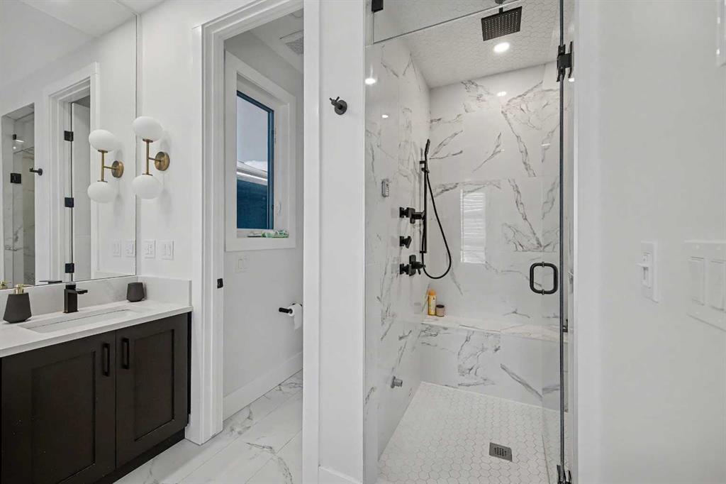Upstairs, you will find a primary suite with VAULTED ceilings, walk-in closet, and exquisite spa inspired EN SUITE boasting a STEAM shower, soaker tub, and double vanities. Two additional bedrooms, another bathroom, and laundry complete the top floor.