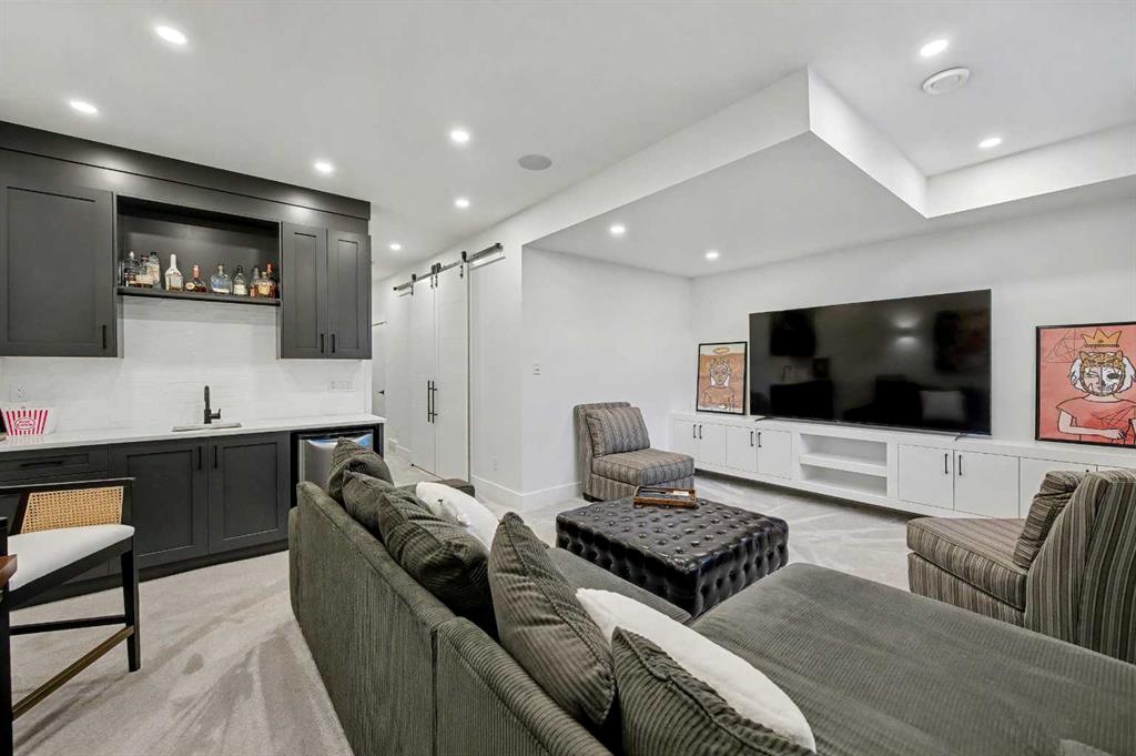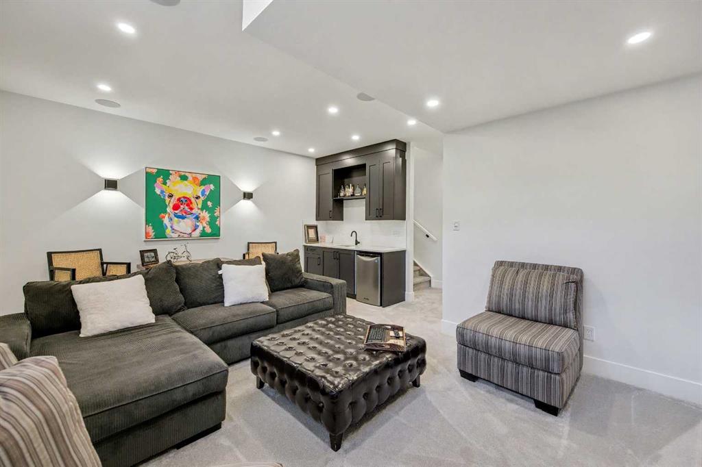 The basement is FINISHED with a large family/rec room featuring a WET BAR and beverage centre, a 4th bedroom, a home GYM, another bathroom, and ample storage. There is also a DOUBLE detached GARAGE.