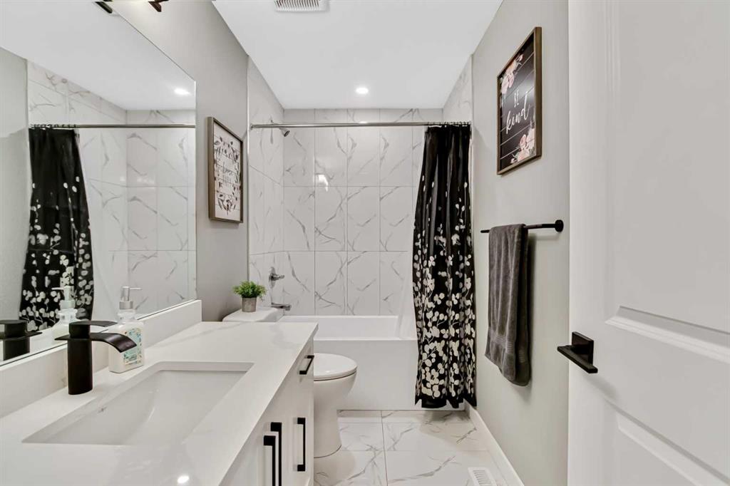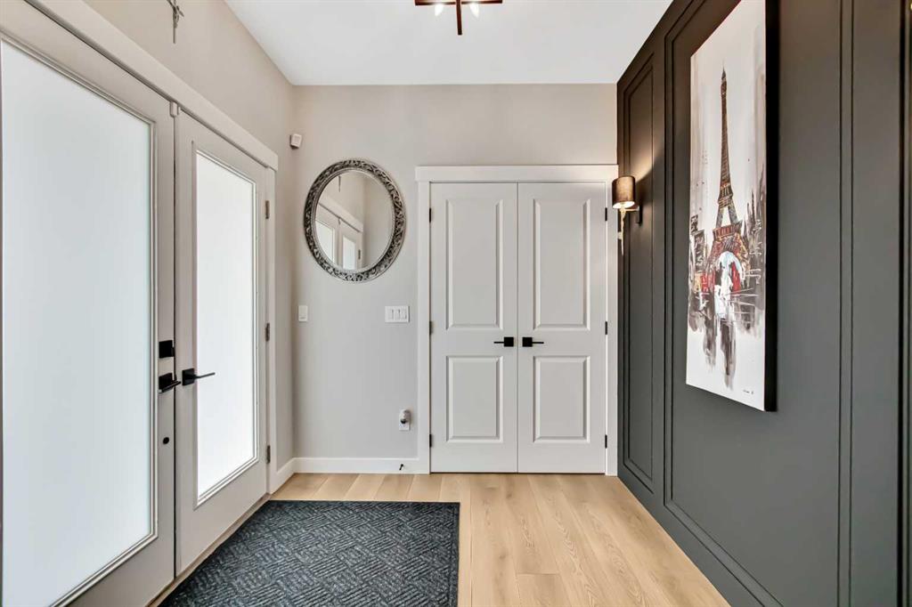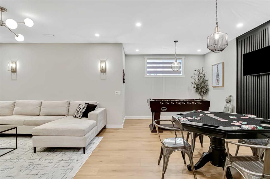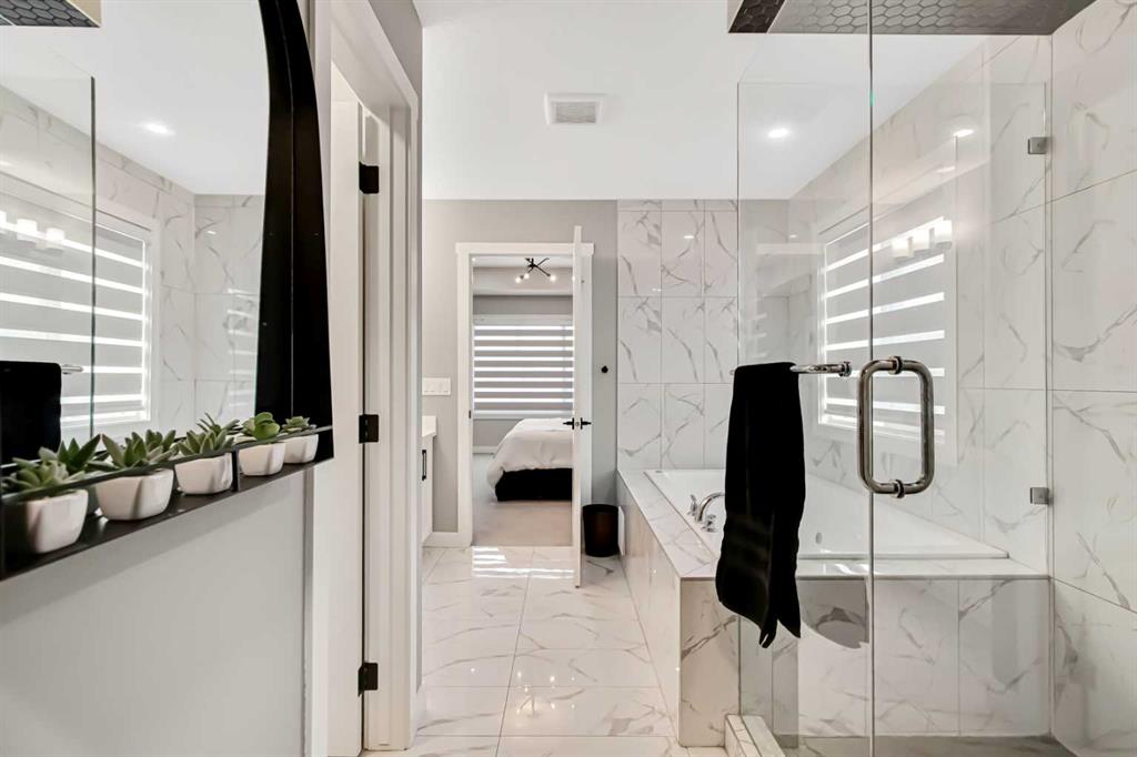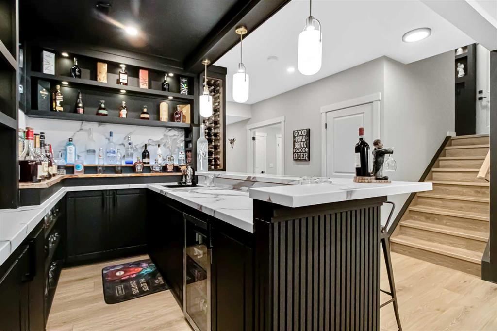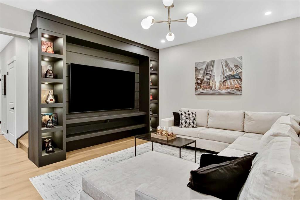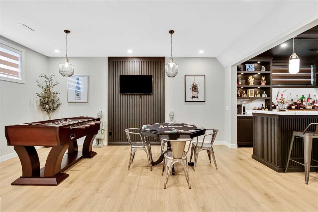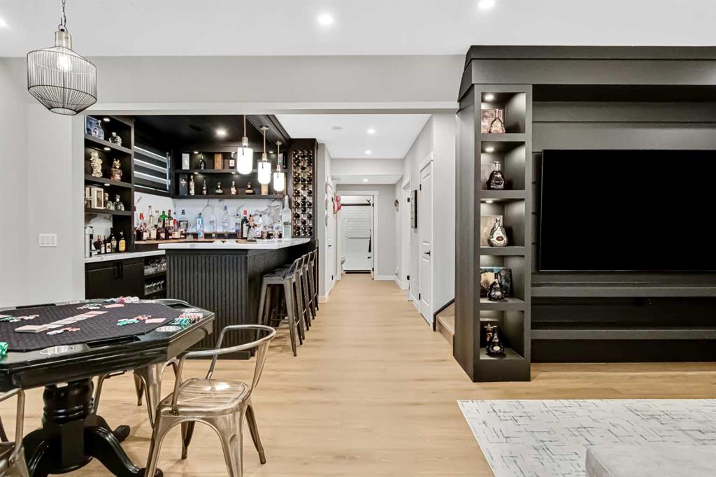 Inside, the main level offers beautifully defined yet connected living zones. A dedicated home office provides quiet focus, while the enclosed flex/media room with French doors is ideal for kids study, gaming, or additional lounge space. The inviting family room with modern fireplace flows seamlessly into the gourmet kitchen – complete with built in appliances, gas cooktop, quartz countertops and a walk through pantry – creating the perfect setting for both daily life and entertaining. Upstairs, the primary suite is a private retreat featuring a spa inspired ensuite with jetted tub, rain head shower and generous walk in closet. Three additional bedrooms provide flexibility for growing families – one with its own private ensuite, while the remaining two share a well appointed full bathroom. A bright bonus room overlooking the pond offers the perfect space for movie nights or relaxed family time, and the upper level laundry room adds everyday convenience. The fully finished basement is designed for entertaining, showcasing a large recreation area, custom wet bar, games space, fifth bedroom, full three piece bathroom and convenient side entrance access – offering versatility for guests or extended family. Additional highlights include custom mudroom built ins, heated garage with epoxy flooring, central air conditioning, water softener and elevated finishes throughout.