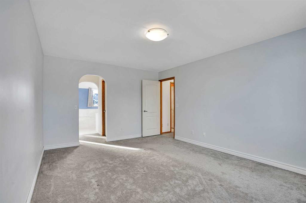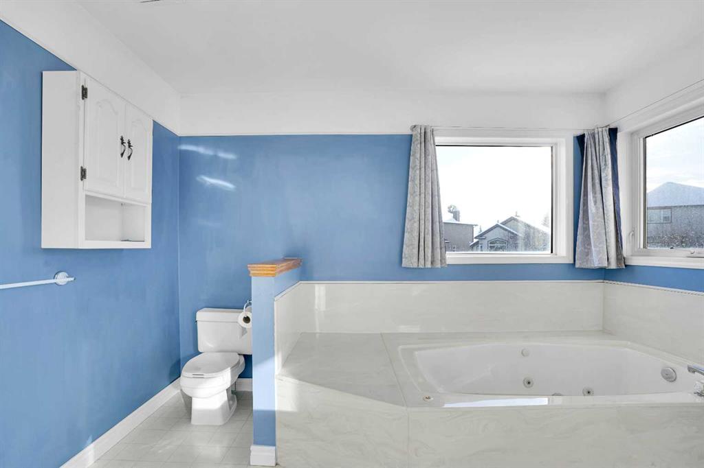 Exceptional property in a fantastic location – enjoy the sunny south deck on a huge pie lot backing onto green space leading to water park ( Tennis, Basket, Kids Facilities , Community Center etc.) or school. Spacious entrance views the cool north living room with hard wood flooring. Everyone loves a spacious kitchen with an abundance of cabinets, pantry, center moveable island, a gourmet stainless-steel sink and solid wood counters! It is a pleasure to work in this sunny kitchen overlooking the large mature landscaped south yard. The attached family room has a feature brick fireplace and hardwood flooring. Massive master bedroom and an ensuite to die for with oversized jet tub, extended vanity & mirror & separate shower. All bedrooms are generous size. Main floor laundry. Rough in Central Vacuum system. Double garage fully insulated & drywalled. Triple Pine Windows of all north side. NEW ROOF and SIDINGS IN 2022, NEW COMPOSIT DECK IN 2024, Newer carpet thru upper level. All this and an easy walk to the LRT, shopping, school and water park.