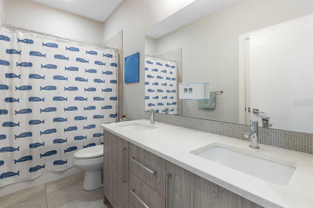 Experience the pinnacle of modern luxury in this custom-built, semi-detached sanctuary located on a tranquil, extra-wide street in the heart of Bowness. Beyond the striking contemporary facade lies an interior defined by sophisticated design and effortless flow. The main level is flooded with natural light from expansive west-facing windows, illuminating wide-plank luxury vinyl flooring and a seamless open-concept layout crafted for both grand entertaining and intimate family moments. At the center of the home is a gourmet kitchen that is as functional as it is beautiful. An oversized quartz island with seating for five serves as a natural gathering spot, complemented by chic pendant lighting, high-end cabinetry, and premium finishes. The transition from the designer dining area to the living room is flawless, anchored by a cozy gas fireplace with a refined wood mantle and custom built-ins that add a touch of architectural interest. Practicality is tucked away discreetly in the form of a stylish powder room and a dedicated rear mudroom designed to handle the demands of an active lifestyle. The upper floor is a masterclass in comfort, headlined by a primary retreat that feels like a boutique hotel. The five-piece ensuite offers a true spa experience with a deep soaker tub, a glass-enclosed shower with a bench, and dual vanities, all adjacent to a large walk-in closet. Two additional spacious bedrooms share a thoughtful five-piece bath, while the upper-level laundry room—complete with a sink and built-in storage—adds a layer of modern convenience that is often overlooked. Entertainment options continue in the fully finished basement, where high ceilings and a spacious family room create an inviting atmosphere. Whether you’re hosting movie night at the wet bar or accommodating guests in the private fourth bedroom and full bathroom, this level adds significant value and versatility. The outdoor space is a rare find, featuring a sunny southwest-facing backyard designed for ultimate relaxation. From summer barbecues on the patio to quiet evenings in your private backyard sauna, this space is an urban oasis. With a detached garage and a location that puts the Bow River pathways, Bowmont Park, and Winsport at your doorstep, this home offers an unparalleled lifestyle. Enjoy the peace of a tight-knit community with the mountains and downtown Calgary just a short drive away. Don’t miss your chance to call this move-in-ready gem your own -book your Showing today!