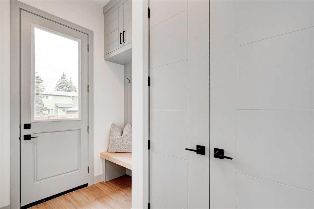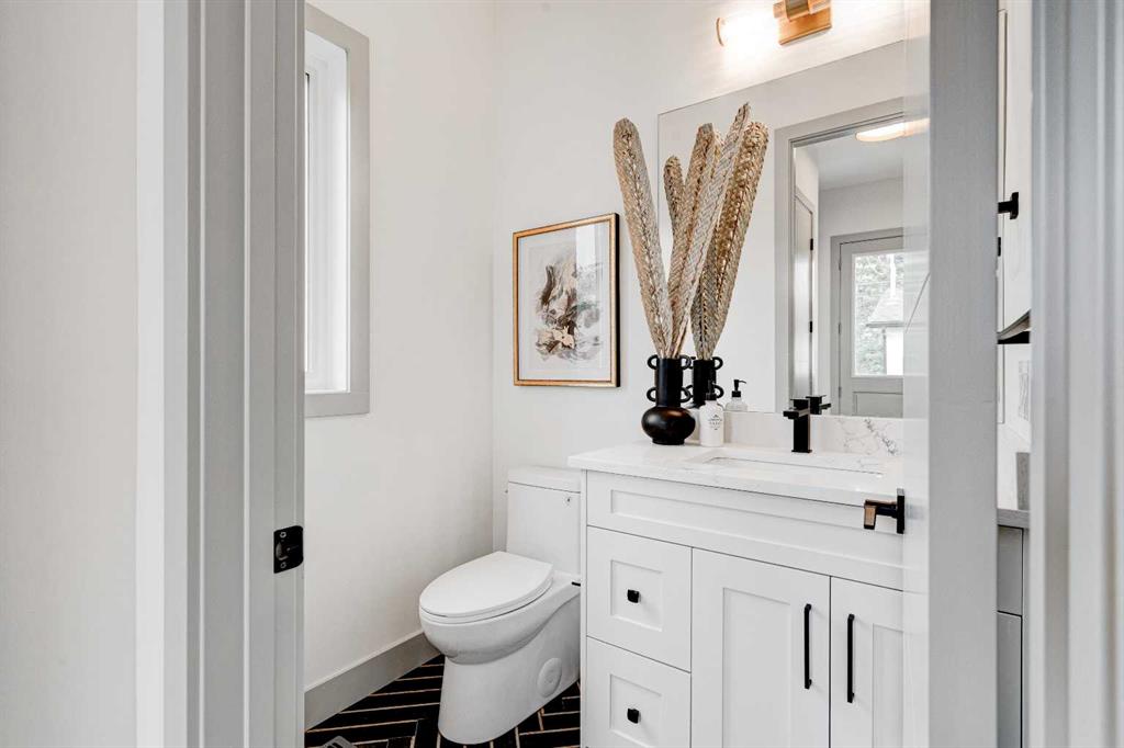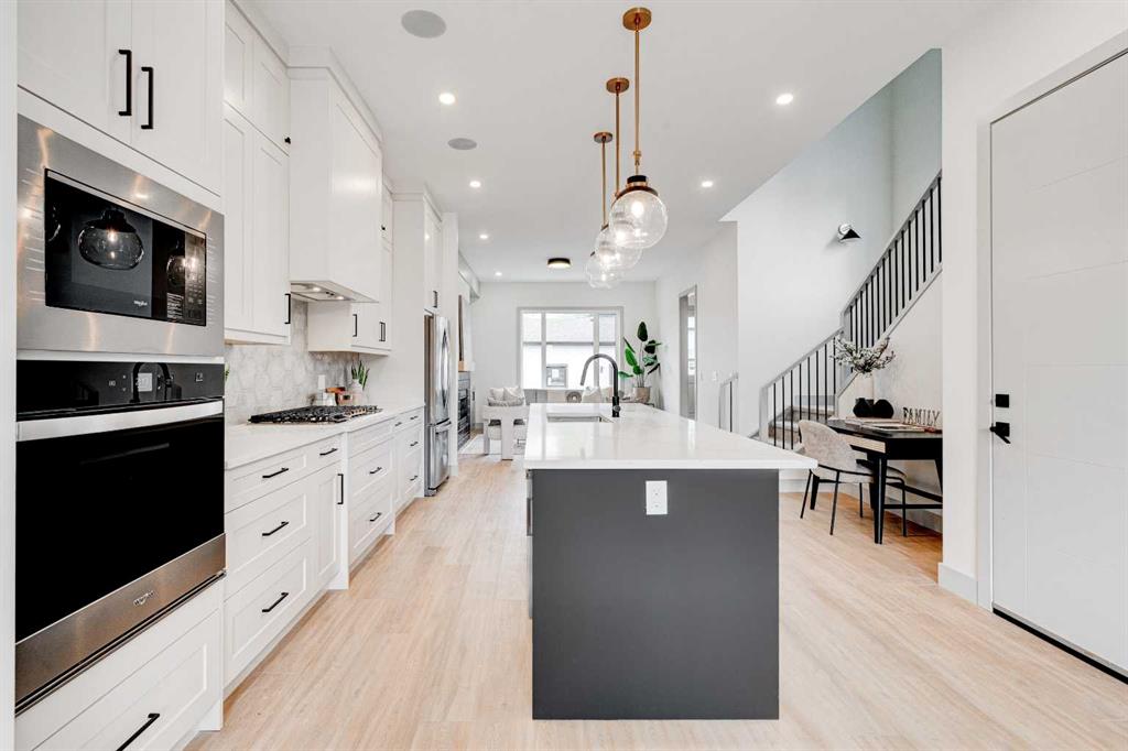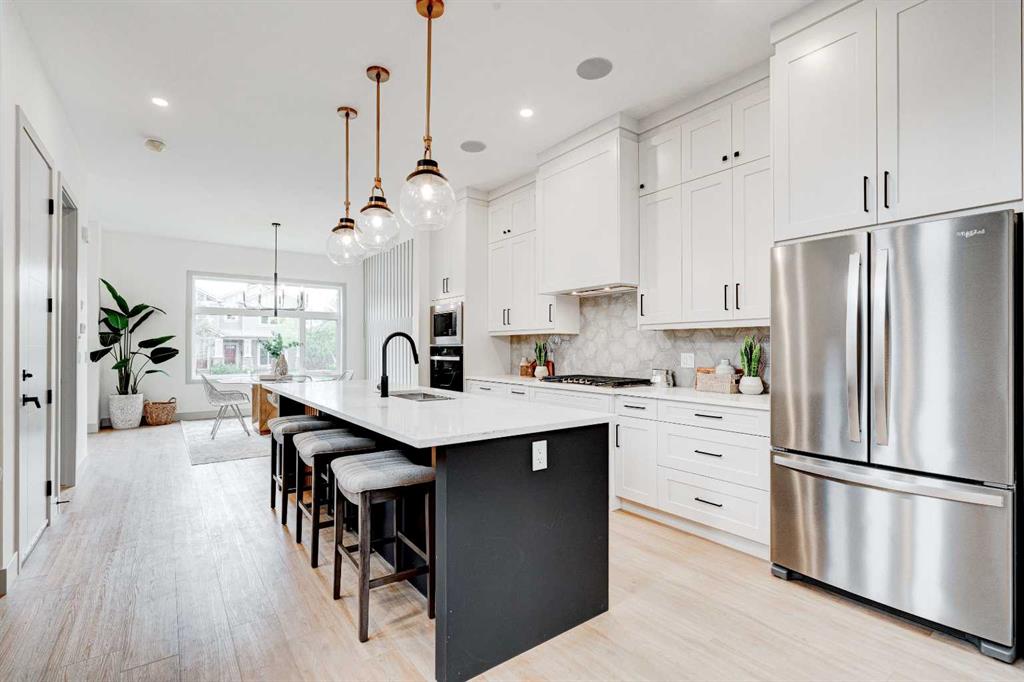 ** 10K BUYER CASHBACK BONUS – INQUIRE FOR MORE DETAILS ** This modern semi-detached home is a stunning blend of thoughtful design and functionality, perfect for anyone looking to elevate their living experience! Located in the heart of Bowness, it offers the perfect mix of urban convenience and peaceful surroundings. Outside, this home has serious curb appeal, w/ a sleek black and white Smartboard exterior that pairs beautifully w/ carefully designed landscaping, and has a 10/10 location next to the park! Out back, there’s a private patio ready for summer BBQs, complete w/ a gas hookup to make entertaining a breeze. Inside, the space is bright and airy w/ 10-ft ceilings on the main floor. The kitchen is a dream for anyone who loves to cook or entertain, w/ custom two-tone shaker cabinets, quartz countertops, and a massive island that acts as both a centrepiece and functional workspace. High-end stainless-steel appliances, including a gas cooktop and built-in oven-microwave combo, make it as practical as it is beautiful, along w/ the large walk-in pantry for all your storage needs. Enjoy everyday meals and family get-togethers in the dedicated dining room w/ a designer chandelier and stunning feature wall, then spread out into the open-concept living room, which features a stunning gas fireplace w/ crystal glass details. Rounding off the main floor is a lovely custom mudroom w/ a built-in bench and private powder room perfect for guests and everyday use. Upstairs, the primary suite is an absolute sanctuary, w/ oversized windows, an extra-large walk-in closet, and a 5-pc ensuite that acts as your own private spa, w/ a freestanding soaker tub, a walk-in shower w/ rain showerhead, dual vanity, and a full-height mirror w/ inset lighting that adds a touch of luxury. Two additional bedrooms on this floor are spacious and bright, w/ quick access to the main bathroom and a convenient upper-level laundry room. The basement is fully finished and includes a LEGAL SUITE w/ its own private entrance. It’s a fantastic option for generating rental income, hosting long-term guests, or even creating a separate space for family members. The suite features a full kitchen, a cozy living area, two bedrooms, and a full bathroom—all finished w/ durable luxury vinyl plank flooring for a sleek and modern look. Throughout the home, you’ll find matte black finishes on all hardware and stylish LED pot lights. It’s also ready for easy upgrades, w/ rough-ins for air conditioning already in place. And the location? Couldn’t be better! You’re next to a park with a skating rink, minutes from the beautiful trails and lagoon at Bowness Park, a local favourite for outdoor activities. The neighbourhood is packed w/ amenities, including charming cafes, boutique shops, and more. For families, there are fantastic schools and playgrounds nearby, including Bowness High School, and commuting is simple w/ quick access to Stoney Trail and 16th Ave! Call today to view!
