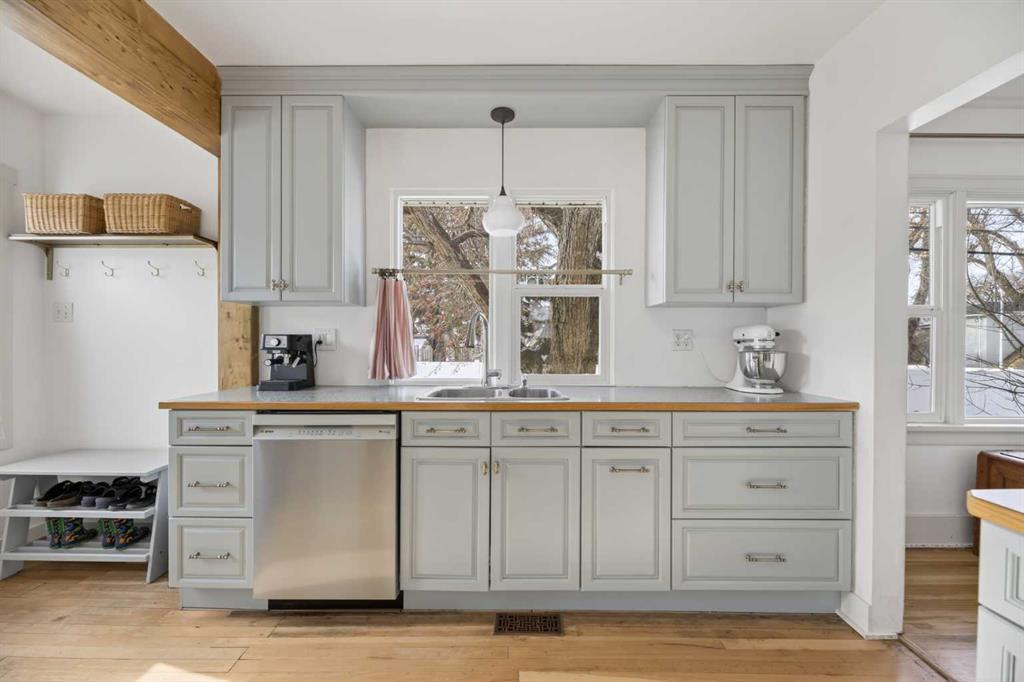 Here is your awesome opportunity to enter the market or expand your investment portfolio! Ideally located within walking distance to Olds College and set in a desirable, well-established neighbourhood, this beautifully upgraded home offers both comfort and long-term value. Extensively improved over the past three years, the home features a bright and welcoming interior filled with natural light from large south-facing windows. The main floor showcases refinished hardwood flooring and an expanded, refreshed kitchen complete with a new stove and dishwasher—perfect for both everyday living and entertaining. The bathroom has been tastefully updated with new flooring and a modern vanity, while updated lighting fixtures throughout most of the home add a fresh, contemporary feel. The spacious primary bedroom includes a generously sized closet for added convenience. Enjoy the inviting enclosed three-season front porch, complete with a cozy den area—an ideal space to relax and unwind. Outside, the PVC privacy fencing enhances both function and curb appeal. The basement offers abundant storage and includes a laundry area with sink, adding to the home’s practicality. With recent shingles (2024), new attic insulation, and thoughtful upgrades throughout, this sun-soaked property is move-in ready and a smart choice for homeowners and investors alike.