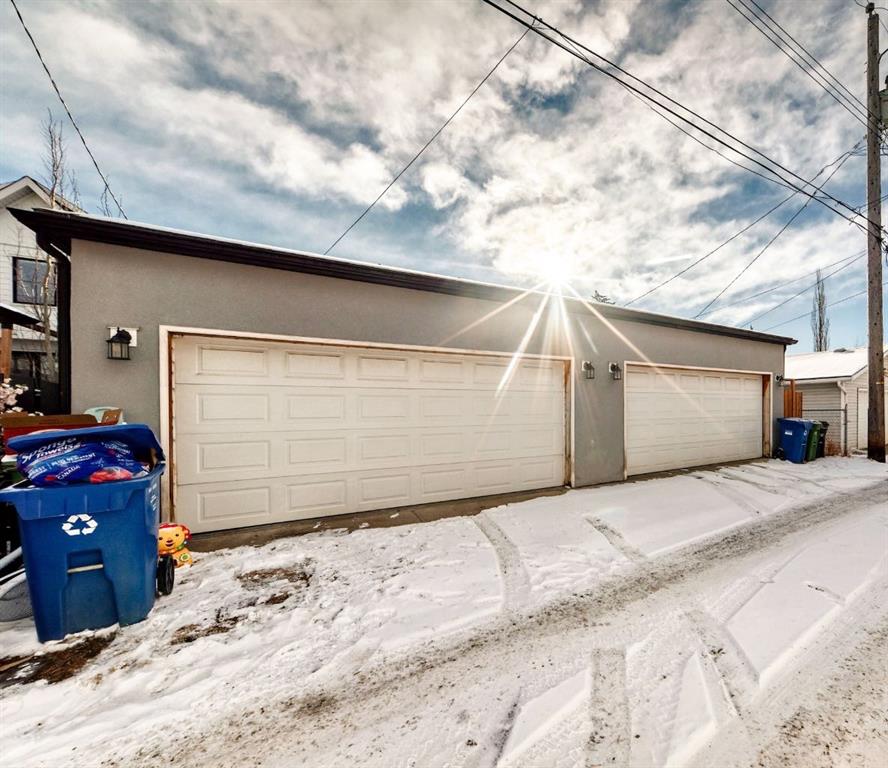 Stunning 2014 custom-built semi-detached home in the heart of trendy Bowness. A short stroll to Bowness Park, Bow River pathways, shops, restaurants, and cafés, with quick access to COP, downtown and the mountains, this home combines modern luxury with a vibrant community lifestyle. This home has a bright open floor plan with 4 bedrooms, 3.5 baths, office, fully developed basement and double garage. Boasting 2,828.9 sq ft of total developed living space, including 1,999.6 sq ft above grade, the main floor features 9’ ceilings, engineered hardwood, a chef’s kitchen with granite counters, large island with breakfast bar, pantry, and premium stainless steel appliances including a Café 5-burner gas cooktop and ThinQ refrigerator with glass beverage door, plus a spacious dining area and large living room with gas fireplace. A mudroom with built-in bench and cabinets opens to the fenced backyard with lawn area and a concrete patio with pergola, this home is enhanced by oversized custom front and back doors with windows for additional sunlight. Upstairs, the primary suite includes a walk-in closet and a luxurious, spa-inspired 5-piece ensuite with jet soak tub, toilet room, double vanity, and separate shower, upper level also has two additional bedrooms, a computer nook, a 4-piece bathroom, and upper-floor laundry room. The basement offers 9’ ceilings, a large bedroom with walk-in closet, full bathroom, huge family room with gas fireplace and a wet bar for entertaining as well as plenty of storage. Additional features include: Central A/C, vacuum system and attachments, custom blinds, enlarged laundry room with sink, upgraded lighting fixtures throughout, Hue smart lighting in kitchen, bedrooms, and hallways, along with a double detached garage with shelving. A rare opportunity in a vibrant, walkable community.