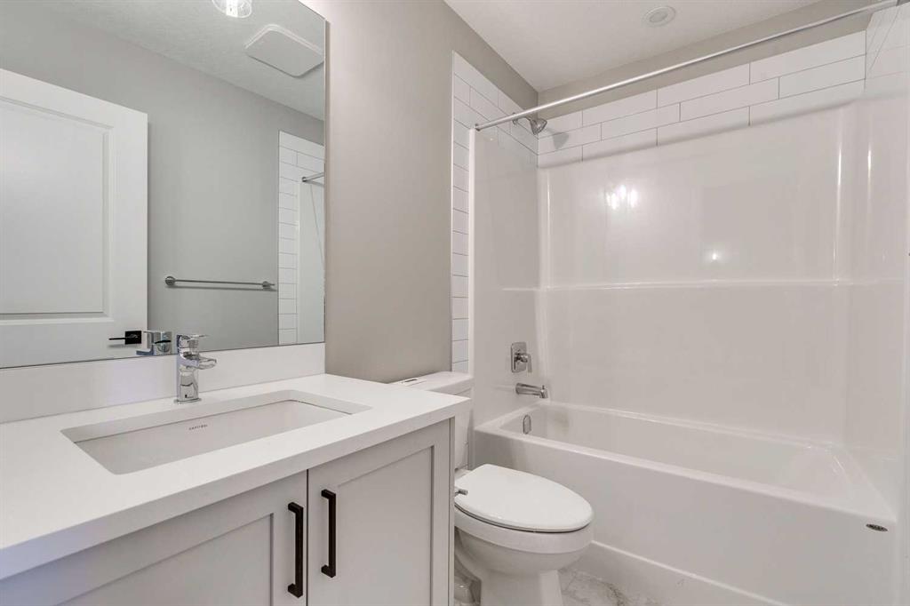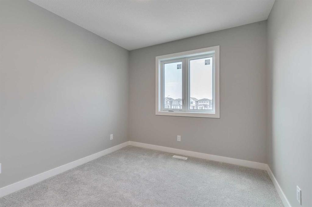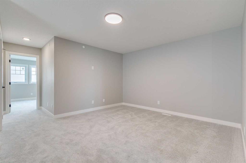 Welcome to the Elliot by Broadview Homes, a thoughtfully designed new construction home located in the southeast Calgary community of Hotchkiss. Offering a functional layout with a main floor flex room, side entrance, upper-level bonus room, walk-in closets in every bedroom, and basement rough-ins for future development, this home is built to support both everyday living and long-term flexibility. Step inside from the covered front porch to a versatile front flex space, perfect for a home office, playroom, or quiet workspace. The main level features an open-concept design with a bright kitchen at the center, complete with a large island, ample cabinetry, and excellent flow into the dining area. The spacious great room is ideal for relaxing or entertaining, highlighted by an electric fireplace with stunning floor-to-ceiling tile detail that creates a striking focal point. A convenient powder room and a practical rear entry with a generous closet complete the main floor. The side entrance leads directly to the undeveloped basement, with rough-ins already in place, creating outstanding potential for future additional bedrooms, a home gym, or extended living space. Upstairs, the layout is both smart and family-friendly. Two secondary bedrooms, each with their own walk-in closet, are separated by a central bonus room that works beautifully as a media space, homework zone, or second lounge. A dedicated upper laundry room adds everyday convenience. The primary suite offers a private retreat with an oversized walk-in closet and a full ensuite. Located in Hotchkiss, one of Calgary’s newest master-planned communities, residents enjoy access to mountain views, expansive green spaces, and scenic boardwalk pathways surrounding a 30-acre wetland. With future parks, schools, and shopping planned nearby, plus quick access to Stoney Trail and Highway 22X, you’re only minutes from Seton, the YMCA, South Health Campus, and major amenities. An excellent opportunity to own a brand new Broadview home in SE Calgary, offering modern design, flexible living space, and future development potential.