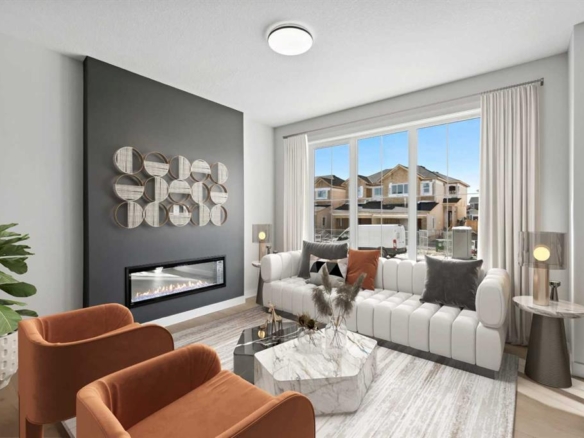 This beautifully designed 2135 SQFT semi-detached home, built by 5-star builder Golden Homes, sits on a conventional lot with an oversized double car front-attached garage, offering the perfect combination of functionality and modern craftsmanship in one of Chestermere’s most desirable communities.