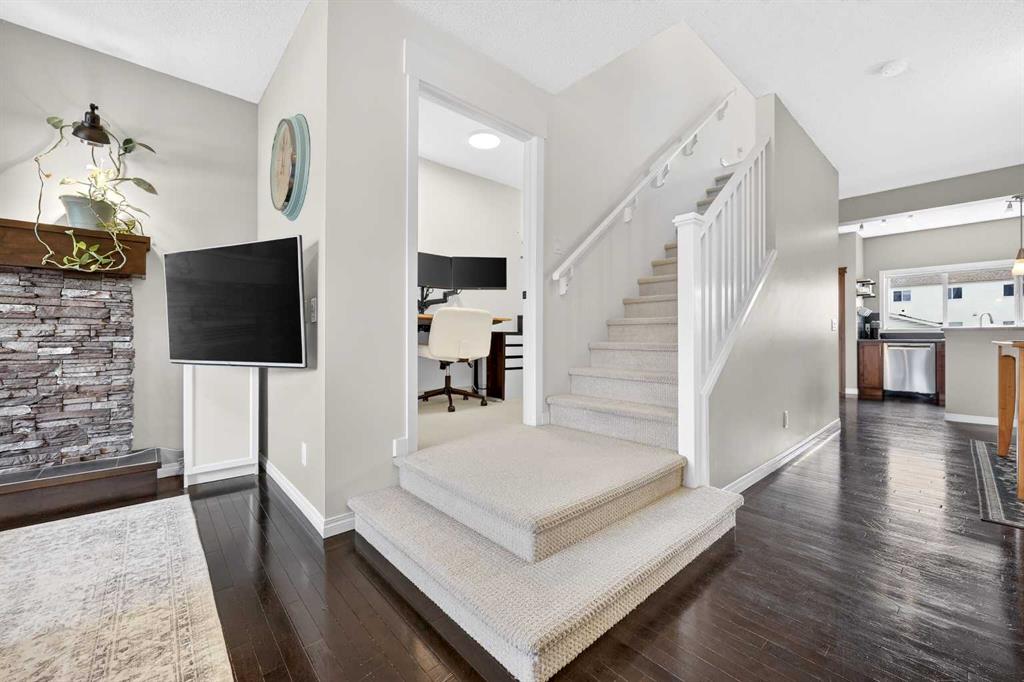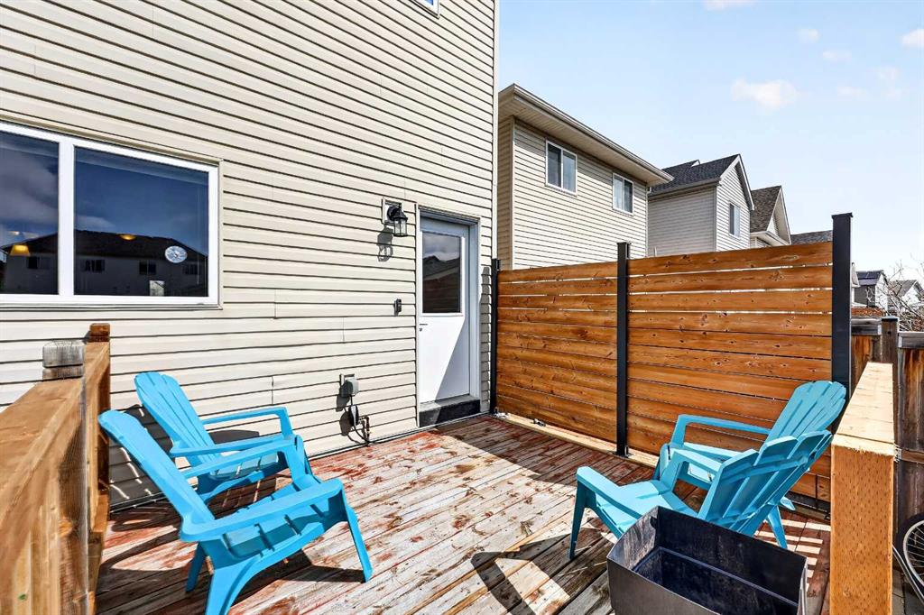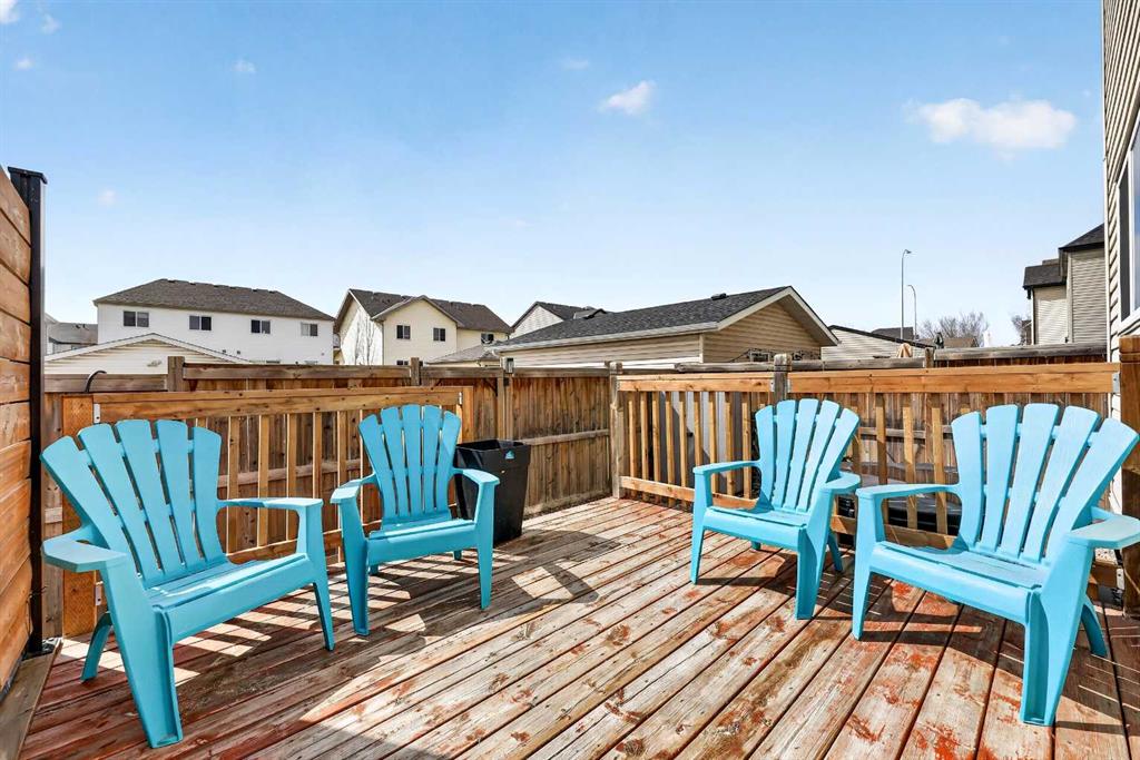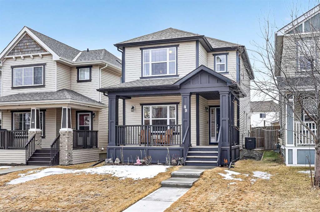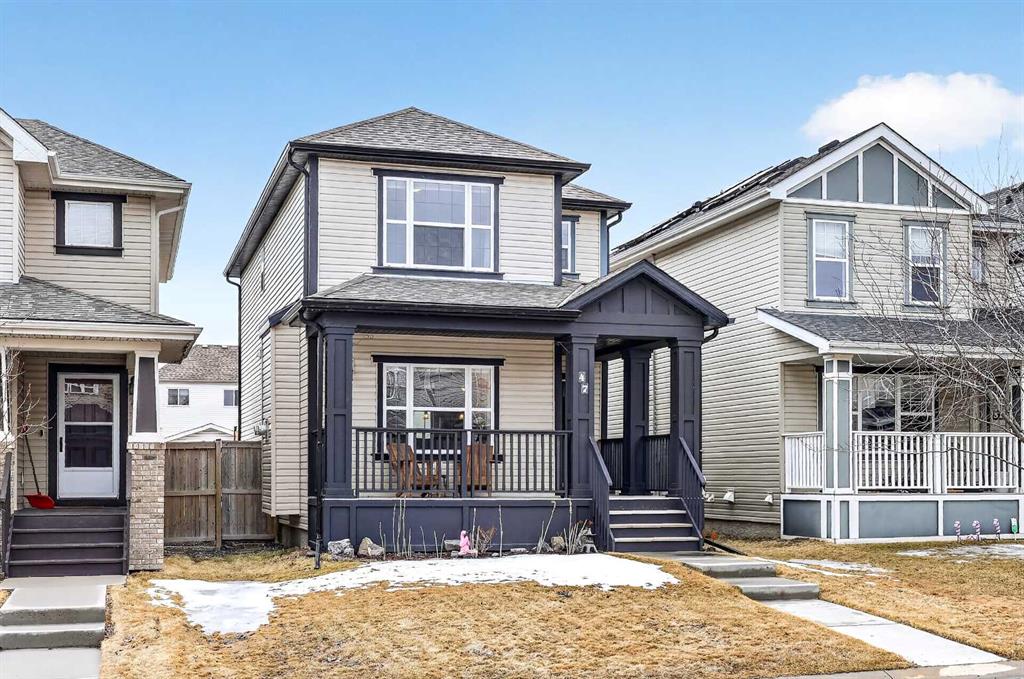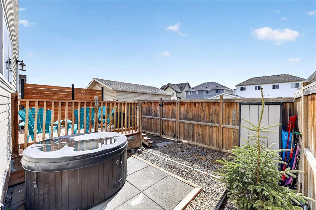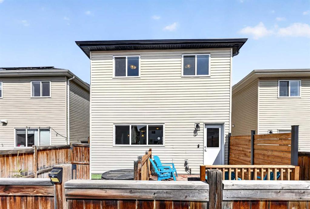 Welcome to exceptional value in Copperfield. This beautifully maintained single-family home offers outstanding curb appeal, highlighted by a charming covered front porch. Step inside to a bright, open-concept main floor filled with natural light and finished with gleaming hardwood throughout. The inviting living room features a cozy gas fireplace and flows seamlessly into the dining area and kitchen—perfect for both everyday living and entertaining. The kitchen overlooks the sunny, south-facing backyard, complete with a deck and hot tub, creating an ideal outdoor retreat. Stainless steel appliances and a spacious pantry add both style and functionality. The main floor also includes a dedicated office space—perfect for working from home—as well as a convenient two-piece powder room. Upstairs, the spacious primary suite comfortably accommodates a king-sized bed and features a walk-in closet and a well-appointed ensuite with dual vanities, a soaker tub, and a separate shower. Two additional bedrooms, a full bathroom, and the convenience of an upper-level laundry room complete the upper floor. The home also features central air conditioning. The unfinished basement offers excellent potential, with a rough-in for a future bathroom—ready for your personal touch. Ideally located just minutes from Deerfoot Trail and Stoney Trail, and close to shopping, dining, and amenities. A rear parking pad provides space for a future garage. Call your favourite realtor today to schedule a showing.