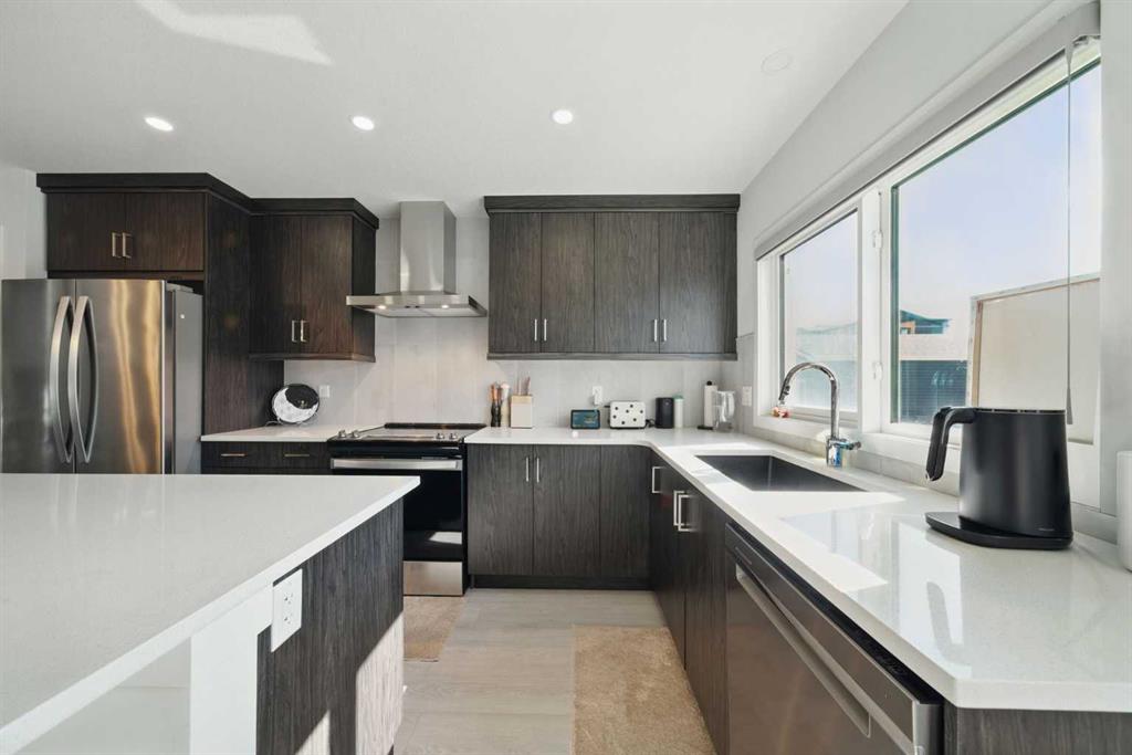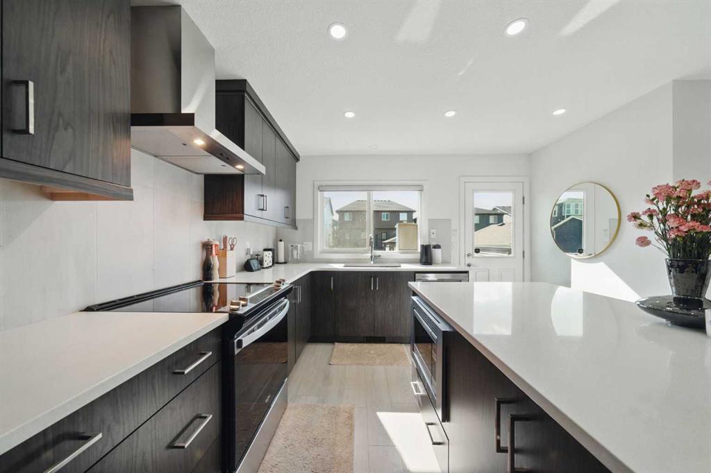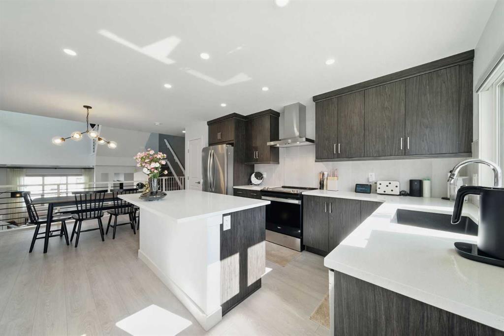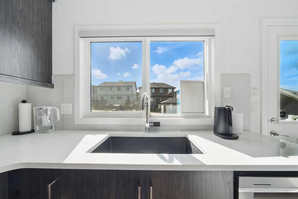 Former Jayman Show Home | Open to Above Floor Plan | Unique Designer Masterpiece | Solar Panels & AC. Welcome to this exceptional 4-level split home in the thriving Northwest community of Glacier Ridge. A former Jayman BUILT show home, this residence is a true standout—showcasing a thoughtful blend of designer finishes, energy-efficient features, and a rare split-level layout that seamlessly balances style and functionality. From the moment you arrive, you’ll be impressed by the professionally landscaped, maintenance-free front yard, offering outstanding curb appeal. Step inside to a bright and inviting main living area, featuring a striking feature fireplace, expansive windows, and sleek LVP flooring that flows beautifully throughout the home. On the second level, discover a chef-inspired gourmet kitchen, boasting ample counter space, premium stainless steel appliances, upgraded cabinetry, and designer lighting—all anchored by a spacious dining area ideal for gatherings and entertaining. Naturally beautiful skylights and a split staircase take you to the upper level where you will discover two spacious master suites, each with its own private ensuite, offering privacy and comfort for family or guests. A central laundry room adds everyday convenience. The lower level offers soaring 10’+ ceilings, creating an open and airy recreation room, a third bedroom with walk-in closet, and a full bathroom—ideal for guests, teens, or extended family. Additional highlights include: Solar panels for reduced utility costs, upgraded tankless hot water system, AC, and energy-efficient features throughout. This home has been thoughtfully designed from top to bottom, showcasing the quality craftsmanship. Whether you’re upsizing, investing, or looking for a distinctive layout that stands apart—this is your opportunity to own a show-stopping home in a growing community.
