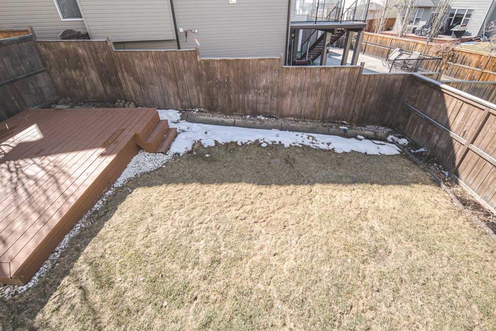 Fully fenced south-facing backyard with deck—ideal for outdoor living.