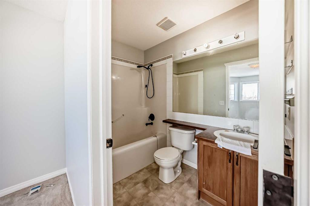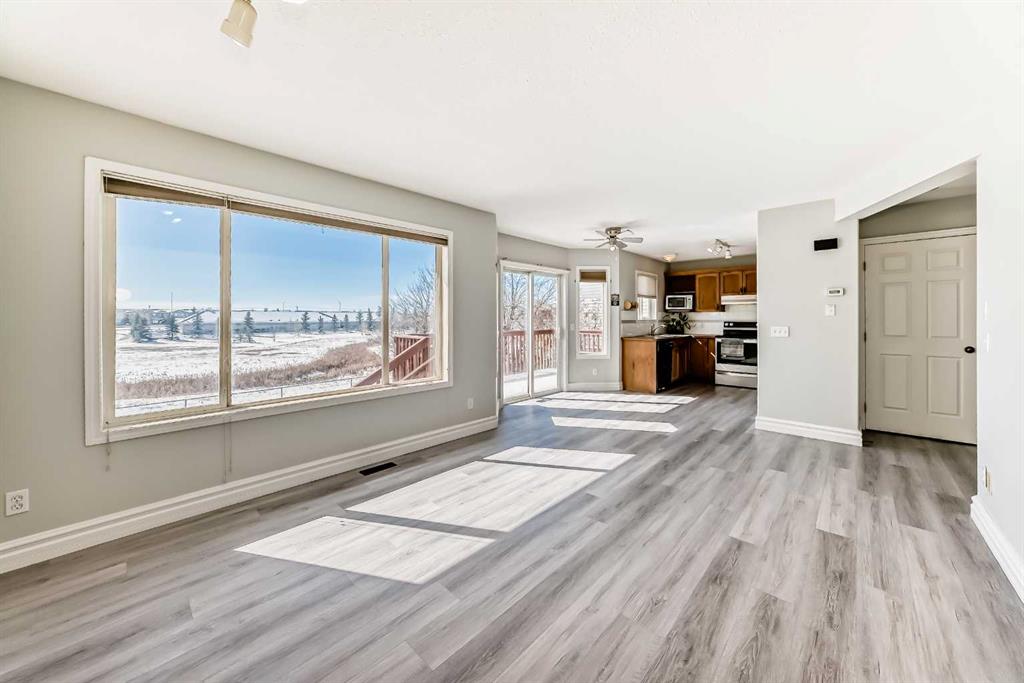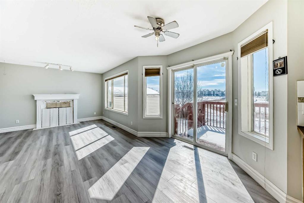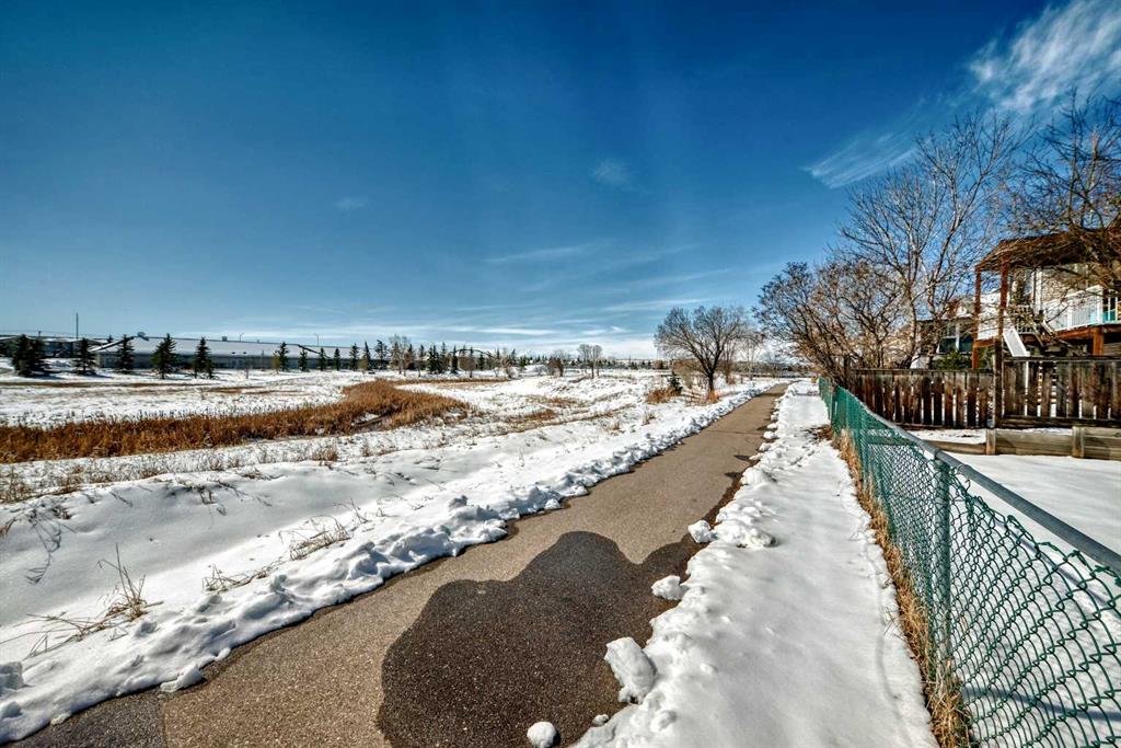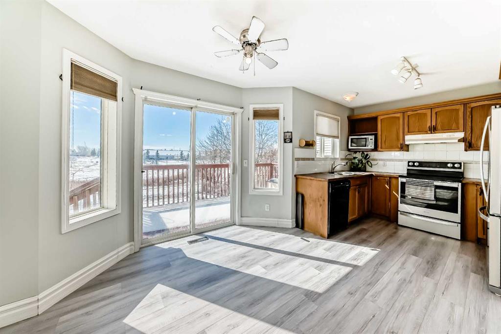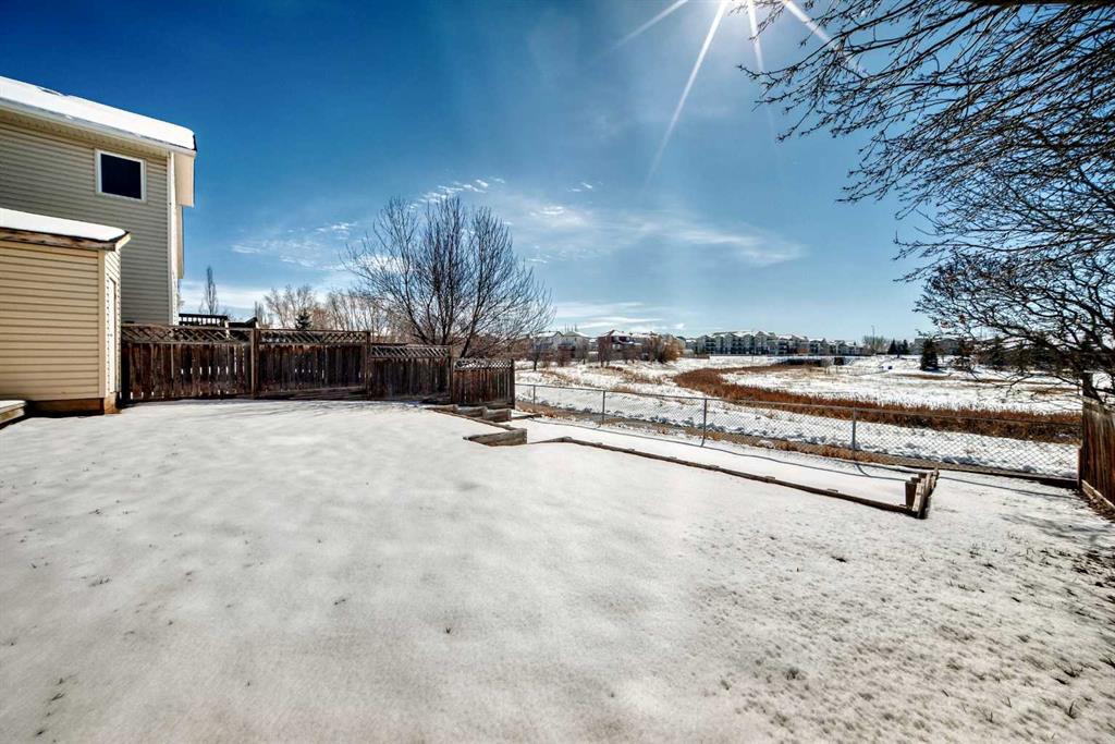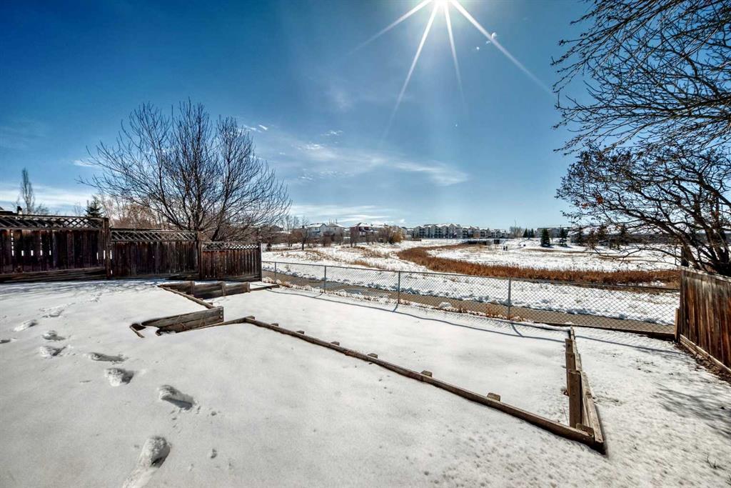 BACKING ONTO NOSE CREEK PRESERVE – 4 BEDROOMS – FULLY FINISHED – DOUBLE ATTACHED GARAGE. Stylish and spacious, all with a perfect location— Note: carpet will be changed with negotiated offer… welcome to your modern sanctuary. Perfectly situated in the highly desired community of Silver Creek, backing directly onto Nose Creek Preserve! This upgraded home blends sleek design elements with everyday functionality across more than 1,900 sq ft of developed space. Tasteful modern upgrades, including brand new luxury laminate flooring that elevate your experience. Just off the front door find your access to your attached double garage, making parking effortless year-round, plus extra storage or a workshop. Then inside You’re greeted by a flood of natural light through large windows, accentuating the open layout and stylish finishes. The main floor is all about connection and comfort. The inviting living room, anchored by a cozy gas fireplace, is made for everything from lazy Sundays to lively gatherings. Rich laminate flooring adds a contemporary touch, while the expansive kitchen steals the show with sleek stainless steel appliances that tie the space together beautifully. A generous dining area flows seamlessly to the backyard, where your south-facing, sun-drenched deck and patio invite you to enjoy morning coffees, summer BBQs, and effortless outdoor living with a beautiful view. Upstairs, the large primary suite offers a peaceful retreat with its own elegant 4pc ensuite. Two additional bedrooms and another 4pc Jack and Jill style bathroom provide plenty of room for family, guests, or a home office setup. The fully finished basement is as versatile as it is cozy — the perfect spot for movie nights, a kids’ zone, or a quiet workspace — plus a spacious fourth bedroom for added flexibility. Located in the vibrant, family-friendly community of Silver Creek, you’re just steps from parks, playgrounds, walking and biking paths, schools, transit, and all the shopping and amenities that NW Airdrie has to offer. NOTE: carpets on the upper level and basement need replacing. The seller will negotiate replacement with your offer. Book your private viewing today while it lasts!