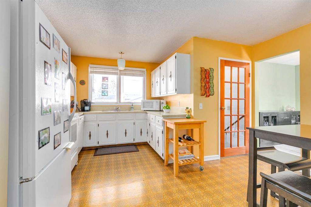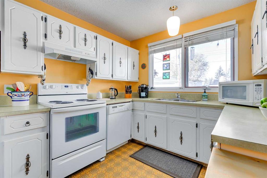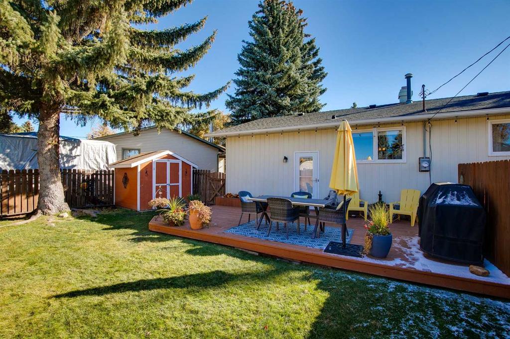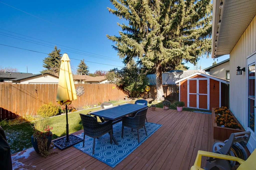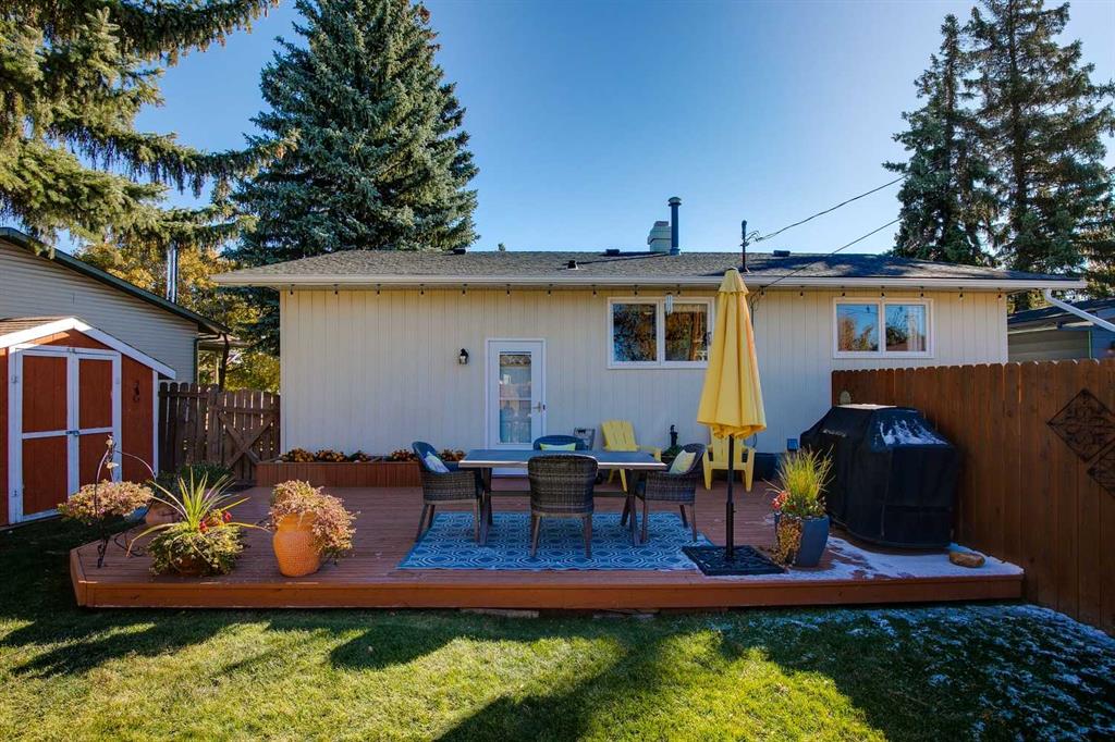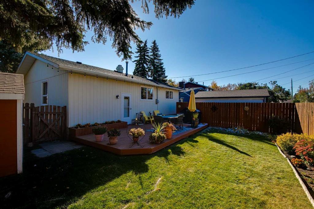 Over 2,400 sqft of total living space on a quiet street in the heart of Queensland. Well cared for bungalow with excellent opportunity to upgrade to your liking. Spacious living room with a full-size dining room that can accommodate large family gatherings. Country-Style kitchen with a spacious nook, plenty of cupboard and countertop space plus a window overlooking the backyard. Three comfortable bedrooms including a large primary with an upgraded 3-piece ensuite, 4-piece bathroom and a full size linen closet. Separate back door entry to an oversized deck and beautifully landscaped yard with a garden shed. The lower level is perfect for a growing family! The rec room has space for a home gym, TV and features a traditional wood burning fireplace which is fully operational. Guest bedroom (window not to egress), den or hobby room, laundry, mechanical and plenty of storage (room to add another full bathroom). The roof shingles were replaced in 2016 and new lower level carpet this year. Off-street parking for 2 vehicles, RV friendly and plenty of room to build a double garage. Great location, close to schools, shopping, restaurants and easy bike ride to the pathways of Fish Creek Park. New RPR in supplements. Quick possession is available. Great family home for under $500,000!