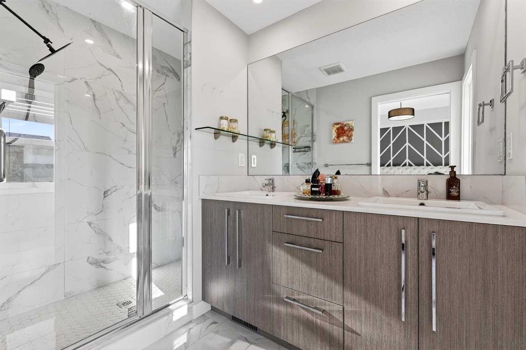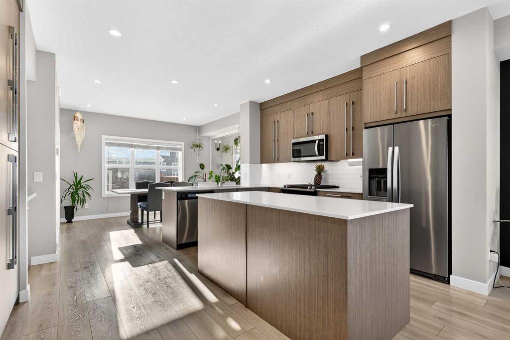 Welcome to this beautifully maintained NO CONDO FEE townhouse located in the heart of Chestermere, offering the perfect blend of style, space, and functionality. Tastefully upgraded throughout, the main floor features a bright open-concept layout and a stunning chef’s kitchen complete with a gas stove, stainless steel appliances, a large breakfast bar, and a central island—ideal for everyday living and entertaining. Upstairs you’ll find three spacious bedrooms, including a comfortable primary retreat with a private ensuite featuring a walk-in tiled shower, plus an additional full main bathroom. The upper-level laundry room adds convenience and practicality to your day-to-day routine. The fully developed basement expands your living space with a large recreation area, a fourth bedroom, and a full bathroom—perfect for guests, teens, or a home office setup. Step outside to enjoy the backyard complete with a deck and patio, ideal for summer BBQs and relaxing evenings. A double detached garage completes the package, offering plenty of parking and storage.A rare find with no condo fees, upgrades throughout, and a fantastic location—this home is a must-see!