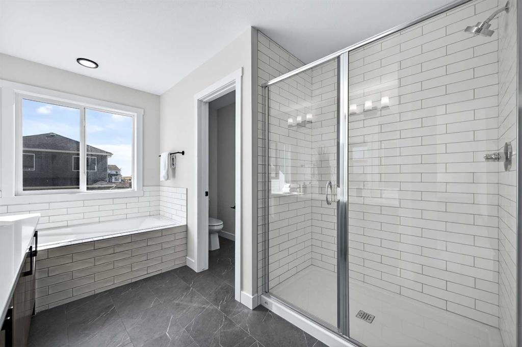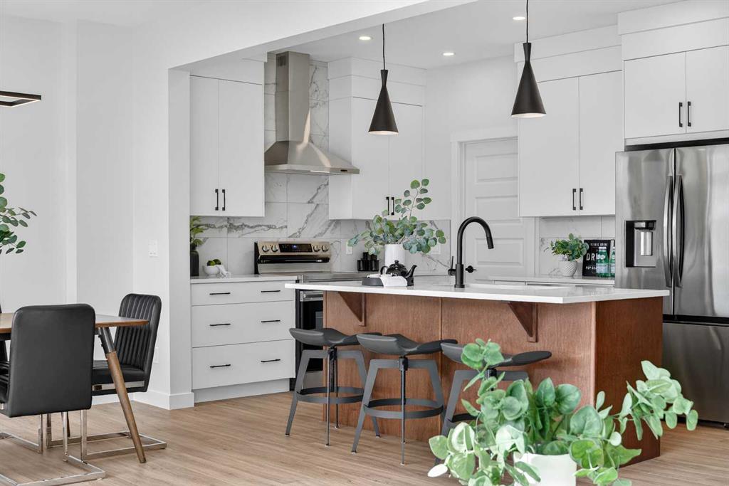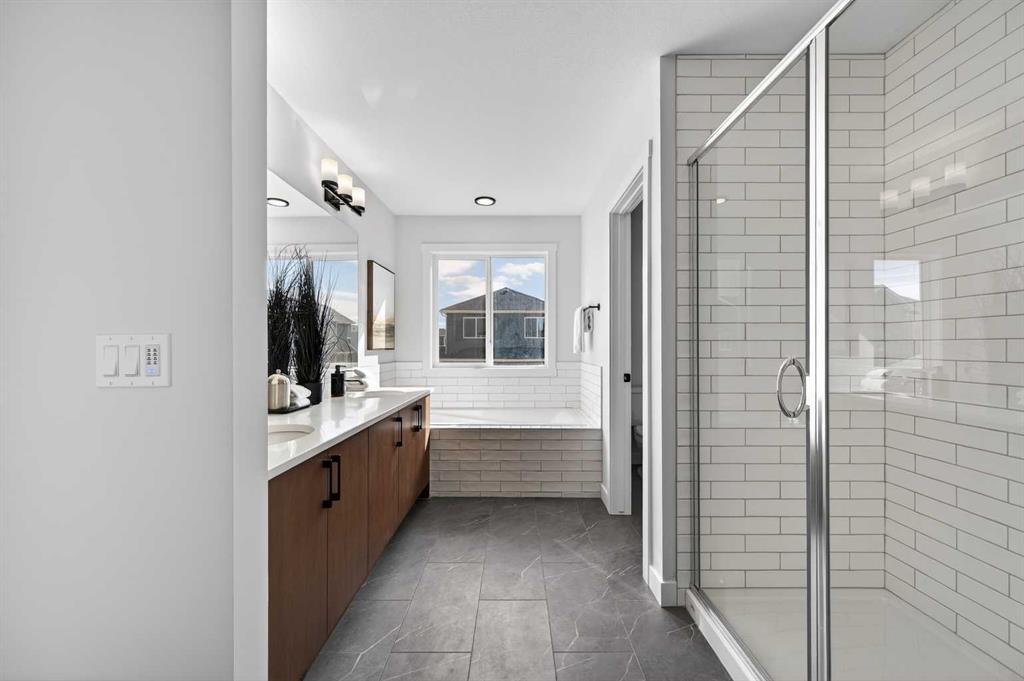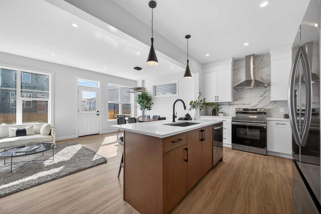 Welcome to the “Leo” a beautifully designed 3-bedroom, 2.5 bathroom brand new home offering over 2000 sq ft of finished living space. Step inside to a bright, inviting main floor featuring luxury vinyl plank flooring that spans the entire level and is complemented by 9-foot ceilings. The chef’s kitchen showcases sleek cabinetry with stylish black hardware, paired with a crisp white tile backsplash, elegant quartz countertops, and stainless steel appliances. The living room features a stunning floor-to-ceiling tiled feature wall, creating a beautiful focal point. Adjacent to the living space, the dining area is ideal for entertaining and flows seamlessly to the outdoors. Completing the main floor is a practical mudroom just off the double-attached garage, a spacious pantry, and a convenient powder room. Upstairs, you’ll find a central bonus room that provides separation between the primary suite and the secondary bedrooms, offering both comfort and privacy. The primary retreat is generously sized and features a spa-inspired ensuite with dual sinks, a relaxing soaker tub, and an oversized shower, as well as a truly impressive walk-in closet. A full bathroom complements two additional well-sized bedrooms, while the upstairs laundry room adds everyday convenience. The unfinished basement, with 9-foot ceilings, offers a blank canvas for your future development ideas. Lewiston is a new, award-winning master-planned community in Northeast Calgary, Alberta, designed to blend nature with urban convenience. Located near Stoney Trail and Deerfoot Trail, it offers quick access to downtown (20 mins) and the airport making this a great place to call home.