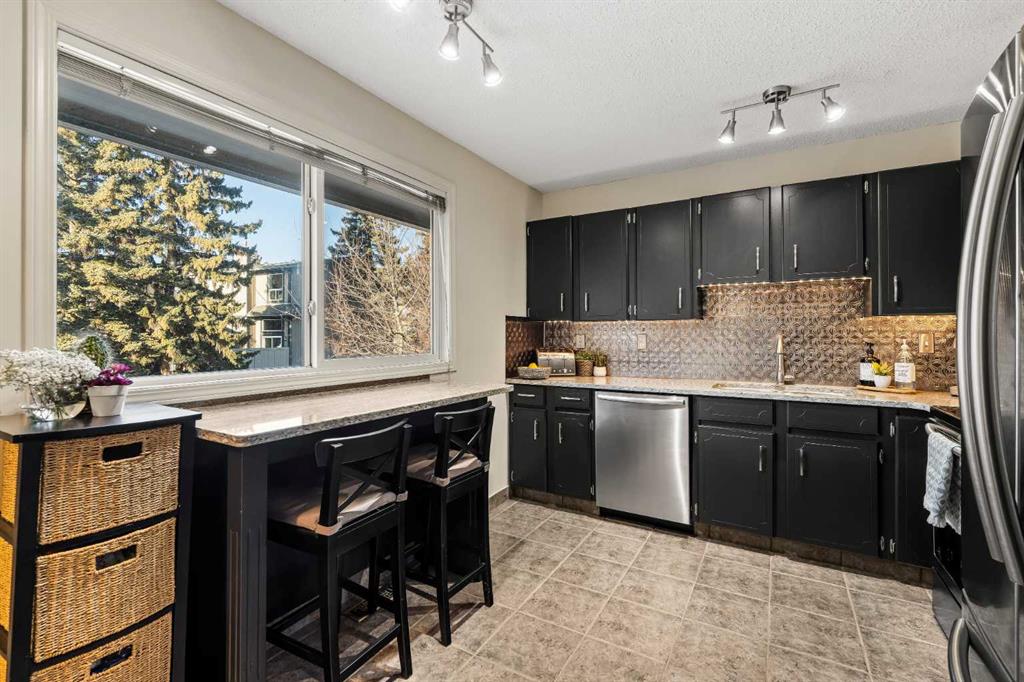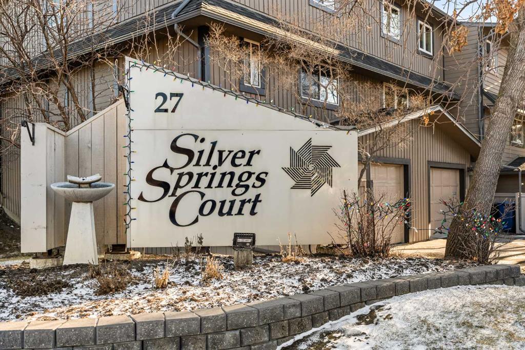 This beautifully maintained end-unit townhome is move-in ready and ideally located backing directly onto a green space and just steps away from parks and exceptional schools with quick access to major thoroughfares. Situated in the desirable community of Silver Springs, this 3-bedroom, 2.5-bathroom split-level home offers nearly 1,650 sq ft of developed living space. With a functional layout and generous storage throughout, this property is ideal for a couple, growing family, or professionals seeking comfort, charm, and convenience. Located on the east side of the complex, the home backs directly onto a green space featuring a soccer field, baseball diamond, tennis courts, a botanical garden, and the beautiful Silver Springs off-leash park, an unbeatable setting for outdoor enthusiasts. The main living room showcases hardwood flooring, soaring double-height ceilings, and large windows that flood the space with natural light throughout the day. This inviting area offers direct access to the backyard and is anchored by a gas fireplace with a brick surround, creating a warm and welcoming atmosphere, perfect for cozy winter evenings. The dining room and kitchen are located on their own dedicated level, making this space ideal for entertaining. The dining area features a reclaimed wood accent wall and overlooks the living room, adding a visual connection to the living space below. The kitchen offers a functional layout with quartz countertops, a suite of stainless-steel appliances, and a pantry. Completing this level is a convenient laundry room with built-in storage and a 2-piece powder room. Upstairs, the spacious primary suite (18’3″ x 10′) overlooks the backyard and includes dual closets and a 3-piece ensuite with a walk-in shower. Two additional well-sized bedrooms with ample closet space, a 4-piece bathroom, and a generous linen closet complete the upper level. The lower level provides additional flexible living space making it ideal for a home office, music room, or studio. The fully fenced private backyard offers plenty of space for children, pets, and entertaining, with direct access to the green space beyond, creating a seamless connection to the outdoors. Completing the property is an oversized single attached garage for secure year-round parking, along with a driveway for additional parking. Located in one of Calgary’s most sought-after communities, this Silver Springs home offers the perfect balance of quiet residential living with immediate access to parks, schools, shopping, and transit.