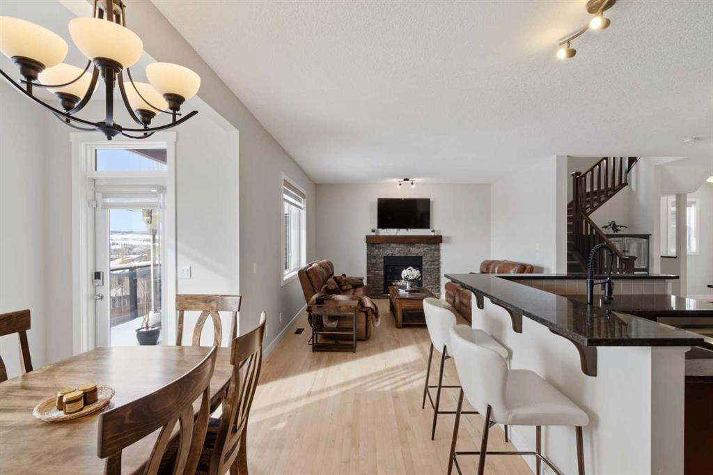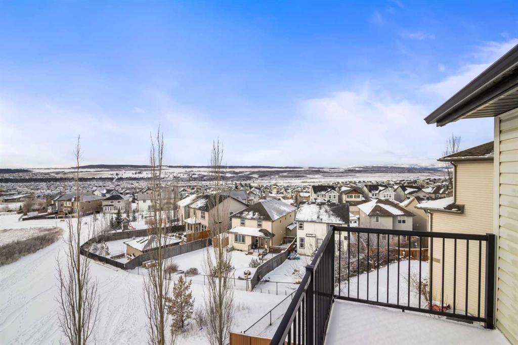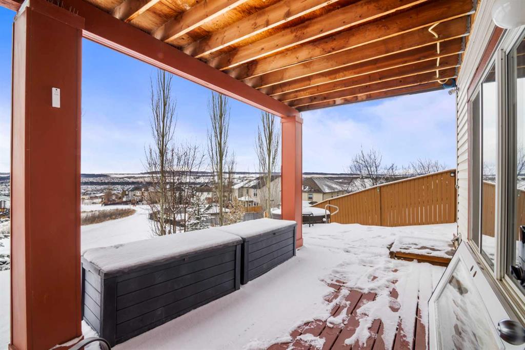 Welcome to this FULLY FINISHED 2-storey walkout home in the desirable community of Heritage Hills. Perfectly positioned BACKING ONTO GREENSPACE & PATHWAYS with stunning SOUTH-FACING VIEWS over the town & mountain peaks. The main floor has been refreshed with REFINISHED HARDWOOD flooring, FRESH PAINT throughout, UPDATED LIGHTING, & select newer APPLIANCES. A MAIN FLOOR OFFICE offers the perfect work-from-home space, while the MUDROOM features BUILT-IN STORAGE BENCHES and access to a convenient WALK THROUGH PANTRY leading into the kitchen. The kitchen showcases rich cabinetry with soft-close doors, GRANITE COUNTERS, ample storage, and an ideal layout for everyday living and entertaining. The living room features a gas fireplace with fan, and LARGE WINDOWS capture the INCREDIBLE VIEWS. Step outside to the full-width upper deck with glass railing, perfect for enjoying the sunny south exposure. Upstairs, OPEN RAILING leads to a VAULTED BONUS ROOM complete with TIERED THEATRE SEATING & a WET BAR. The PRIMARY BEDROOM retreat includes PATIO DOORS TO A SOUTH-FACING DECK, a 5PC ensuite with dual sinks, corner soaker tub, & separate shower, & a CUSTOM CALIFORNIA WALK-IN CLOSET. Two additional bedrooms both with California closets, share a 4pc JACK & JILL BATHROOM, & the UPPER LAUNDRY room includes a SINK, & cabinets, for additional storage. The fully finished WALKOUT BASEMENT features an ILLEGAL SUITE with vinyl plank flooring, cozy living room with SEPARATE LAUNDRY, an open eat-in kitchen area with VIEWS, & access to the COVERED LOWER DECK. A spacious bedroom with walk-in closet & 4PC bathroom complete the level. Outside, enjoy a tiered backyard with garden space, HOT TUB, & separate OUTDOOR LIVING AREAS ACROSS ALL 3 LEVELS. Additional features include GEMSTONE EXTERIOR LIGHTING, SOLAR PANELS, & a new exterior door. Conveniently located with quick access into town or out to Ghost Lake.