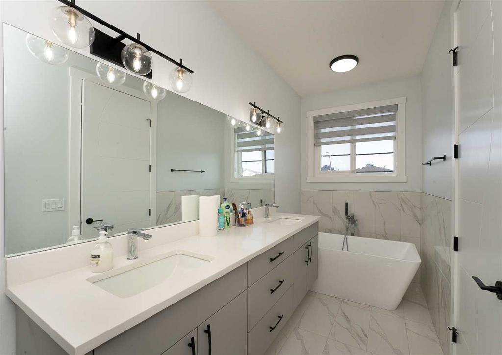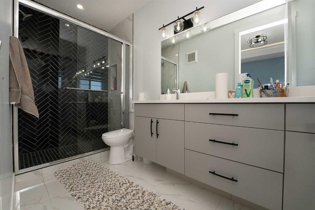 Luxurious Living opportunity in Saddle Ridge!! 4 Bedrooms| 4 FULL BATH| DEN+ FULL BATH on the MAIN | DOUBLE MASTER | SPICE KITCHEN |2 LIVING ROOMS | BONUS ROOM. Located within the walking distance of Gobind Sarvar School, this gorgeous home is here to impress you with its upgrades and craftsmanship. This stunning masterpiece with almost 2475 SQFT of living space with 9ft ceilings offers a layout that maximizes open living space and natural light. Upon entering the open-to-above foyer, you are greeted with a luxurious living space. As you pass the Den on the mainfloor, you will enter the GREAT ROOM w/fireplace that is waiting for you to create memories with friends and family. A fully upgraded Gourmet kitchen equipped with high-end SS appliances comes with a massive island along with the SPICE KITCHEN is a chef’s dream come true. The spacious dining room has plenty of room to entertain your guests. The upper level boasts 4 bedrooms, 3 full bathrooms, and a Bonus room that is perfect for a growing family. The well-thought-out layout offers DOUBLE masters with walk-in closets along with 2 other good-sized rooms and a common bathroom. At lower level, 2 bedroom illegal suite aids in extra income. Don’t wait, book your showing today!