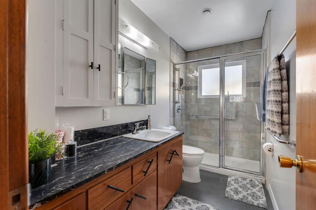 Welcome to 49 Kentish Drive SW situated on a quiet street in the desirable Kingsland neighbourhood. As you walk in, the main floor showcases hardwood flooring throughout and offers a classic layout with a formal living room, as well as a dining and lounge area with a bay window overlooking a sunny west-facing backyard. The kitchen is equipped with a cooktop, built-in oven, white and stainless steel appliances and an eating area. The home includes three bedrooms on the main level and a three-piece bathroom. The fully developed basement provides a spacious family room, two additional bedrooms, another three-piece bathroom, and a large storage area. The backyard features stonework, a private patio area perfect for entertaining, a storage shed and access to your double detached garage. Don’t miss out on owning this home! Book your viewing today!