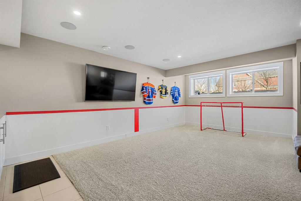 The fully finished basement further expands the living space and provides exceptional versatility for modern family living. This level features a generous recreation area well suited for a media room, games area, or additional family lounge. Whether used for entertaining, relaxing, or creating a dedicated fitness or hobby space, the lower level adds valuable square footage while maintaining practical storage options.