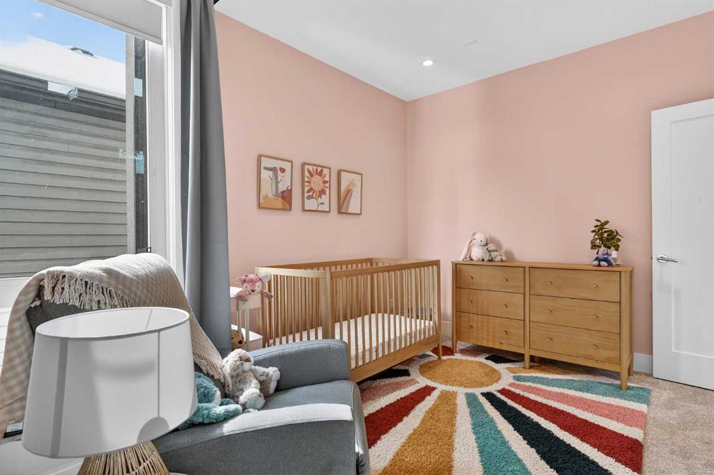 The entire third level is dedicated to a luxurious private retreat. Enjoy breathtaking city views from your rooftop patio and expansive primary suite. The spa-inspired ensuite features programmable in-floor heating, a freestanding soaking tub, a large glass shower, dual vanities finished in vein-cut limestone, a dedicated makeup station, and a generous walk-in closet with built-in cabinetry—creating a true sanctuary to unwind at the end of the day.