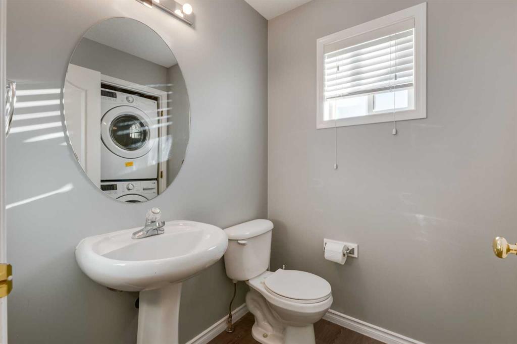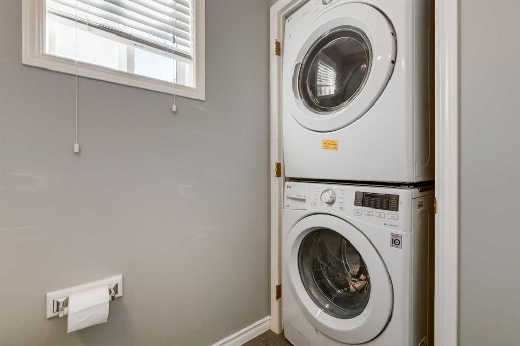The main floor boasts a bright and open layout, perfect for modern living. The kitchen, dining, and living areas flow seamlessly together, featuring luxury vinyl plank flooring, knockdown ceilings, and plenty of natural light. The kitchen opens onto a deck—perfect for summer BBQs and enjoying the beautifully kept backyard. You’ll also appreciate the main floor laundry with a full-size washer and dryer, a convenient half-bath, and access to the single attached garage with extra storage space.