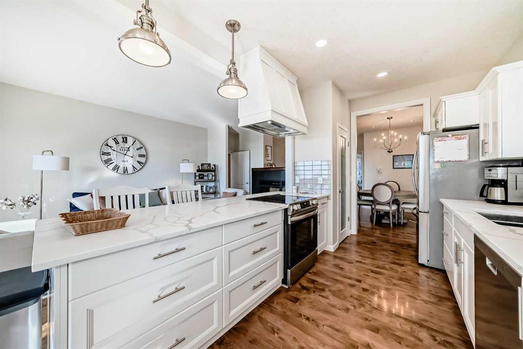 Welcome to Bridle Estates—one of Calgary’s premier 55+ adult communities. From the moment you arrive, you’ll be drawn in by the home’s charming curb appeal, featuring a covered front porch and a double attached garage. Inside, a wide foyer opens into a bright, open-concept layout highlighted by a striking three-sided fireplace and large south-facing windows that flood the space with natural light. The main level showcases rich refinished hardwood floors and a thoughtfully designed floor plan that includes a formal dining room, a dedicated home office, and a spacious living room. The fully modernized kitchen is equipped with stainless steel appliances, ample cabinetry, and generous quartz countertop space perfect for everyday cooking and entertaining. A cozy breakfast nook leads to the large deck overlooking a sunny south-facing backyard. Also on the main floor is a spacious primary bedroom with a walk-in closet and 4-piece ensuite, a convenient laundry room, and a 2-piece powder room. The fully finished walkout basement has brand new carpet and offers even more living space with two large bedrooms, an in-floor heated luxurious 5-piece bathroom with jetted tub, and a bright family room with a second gas fireplace. Step outside to a private lower patio, an ideal retreat for relaxation. Additional features include ample storage, underground irrigation, and approximately 2,350 sq. ft. of developed living space. Bridle Estates is a quiet, well-maintained community offering green spaces, a clubhouse, and walking paths. A low HOA fee ($180/month) covers landscaping and snow removal, ensuring a truly maintenance-free lifestyle. Conveniently located near transit, shopping, dining, and just minutes from Spruce Meadows with easy access to Stoney Trail. Don’t miss your opportunity to enjoy vibrant, carefree living in a beautifully appointed home.