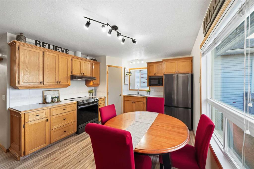 Welcome to 5 Greenview Way. A home that feels as warm and welcoming as the street it sits on. Tucked beneath mature trees on one of Strathmore’s most charming pockets, this sweet blue bungalow greets you with a covered front porch and the kind of curb appeal that instantly feels like home. With a brand new roof and siding in 2025, the exterior not only looks fresh and inviting but also brings peace of mind for years to come. It is the kind of place where you picture morning coffee on the porch, neighbours waving as they walk by, and quiet evenings as the sun dips behind the trees. Step inside and you are welcomed by a generous entry with a built in closet and storage bench, perfect for busy mornings and everyday life. The living room is filled with natural light from a large front window, creating a bright and inviting space to relax or gather. The kitchen offers timeless oak cabinetry with updated hardware, newer appliances, and a modern faucet, blending warmth with function. At the heart of the home, the dining area sits perfectly between kitchen and backyard, making it easy to stay connected whether you are hosting, cooking, or keeping an eye on kids playing outside. The main floor features a spacious primary bedroom, two additional bedrooms, and a full bathroom complete soaker tub, and separate shower. It is a layout that works beautifully for families, guests, or anyone wanting the ease of main floor living. Downstairs, the fully developed basement offers even more space with an additional bedroom, 2 flex spaces, a full bathroom, and a tiled finish throughout. The utility room houses two hot water tanks and the laundry, keeping everything organized and efficient. Outside, the backyard is a true highlight. With mature trees, open green space, and a detached double garage backing onto the rear lane, there is room for vehicles, toys, and projects. Additional parking in the back plus street parking out front makes life here easy and flexible. Homes with this much character and this much space, are hard to find in Strathmore. 5 Greenview Way is not just a house, it is a place to settle in, grow, and create the next chapter of your story.