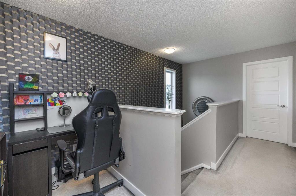 Ascending to the upper level, you will discover three generously sized bedrooms, including a spacious primary retreat with a walk-in closet and a luxurious four-piece ensuite bathroom. The upper level also offers two additional bedrooms, a full bathroom, convenient laundry facilities, and an open flex/den area, perfect for a study space or playroom.