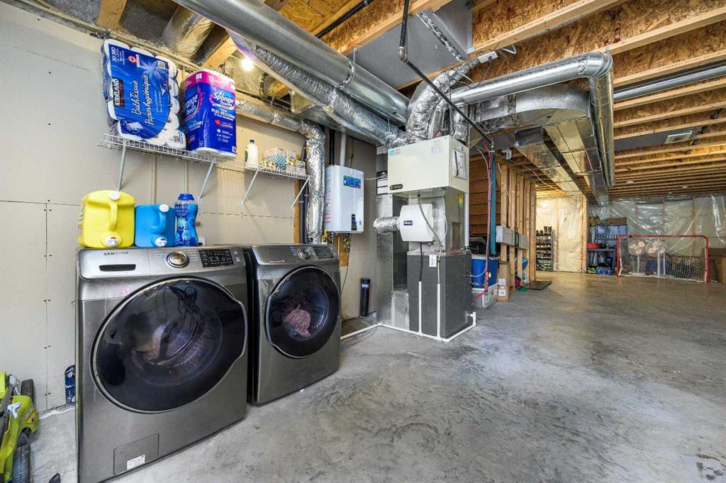 Situated on a corner lot, this home boasts an open-concept layout on the main floor, ideal for contemporary living and entertaining. The spacious living and dining area is complemented by an electric fireplace, while the well-appointed kitchen features a pantry and ample counter space. A rare main-floor bedroom and full bathroom provide flexibility for guests, accommodating multi-generational living or a private home office.