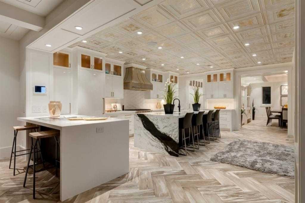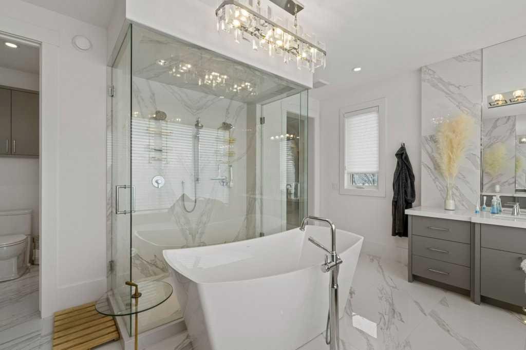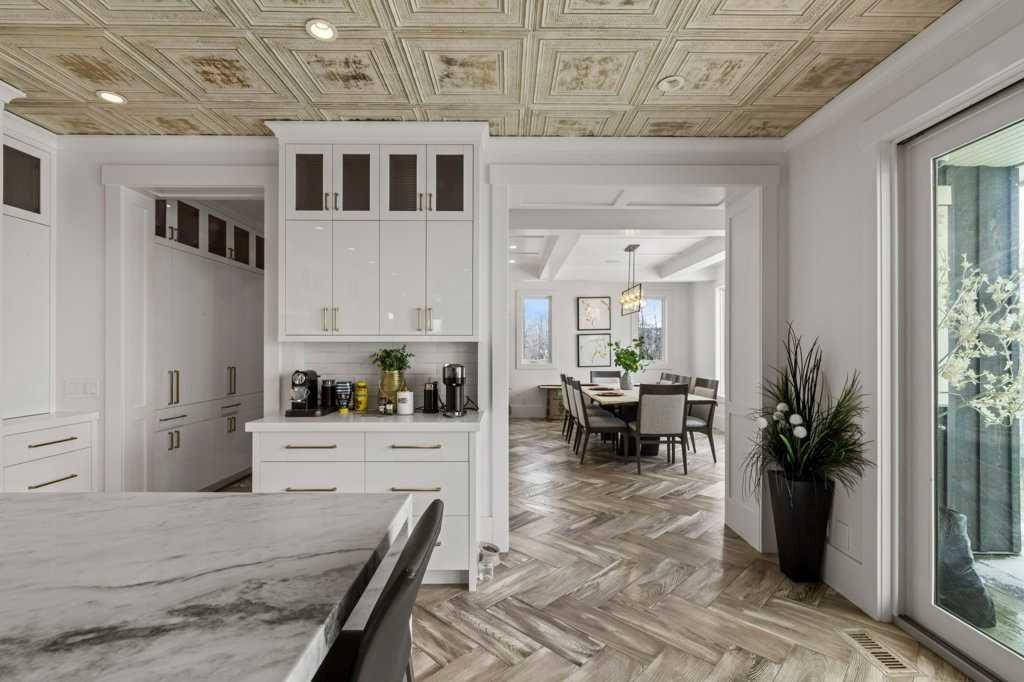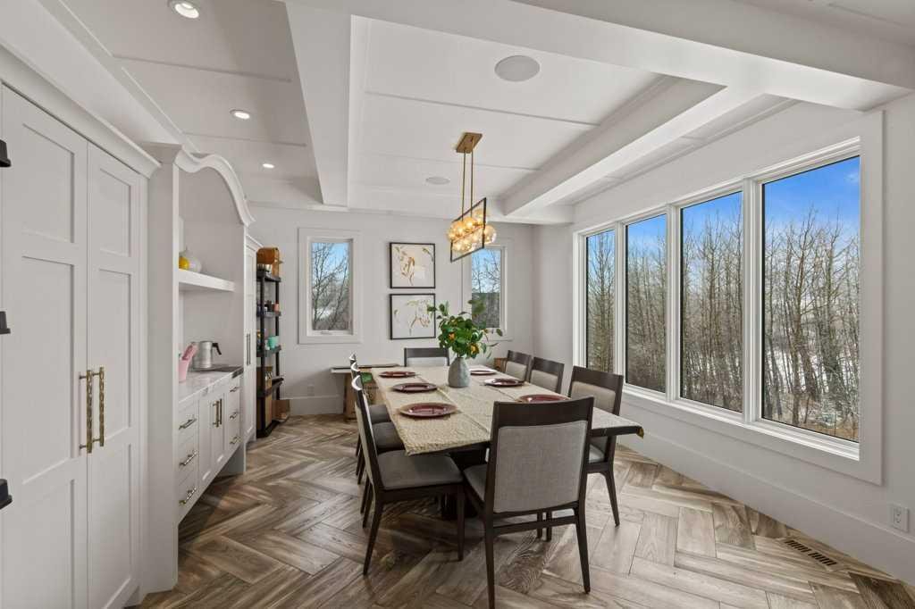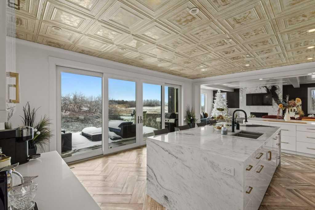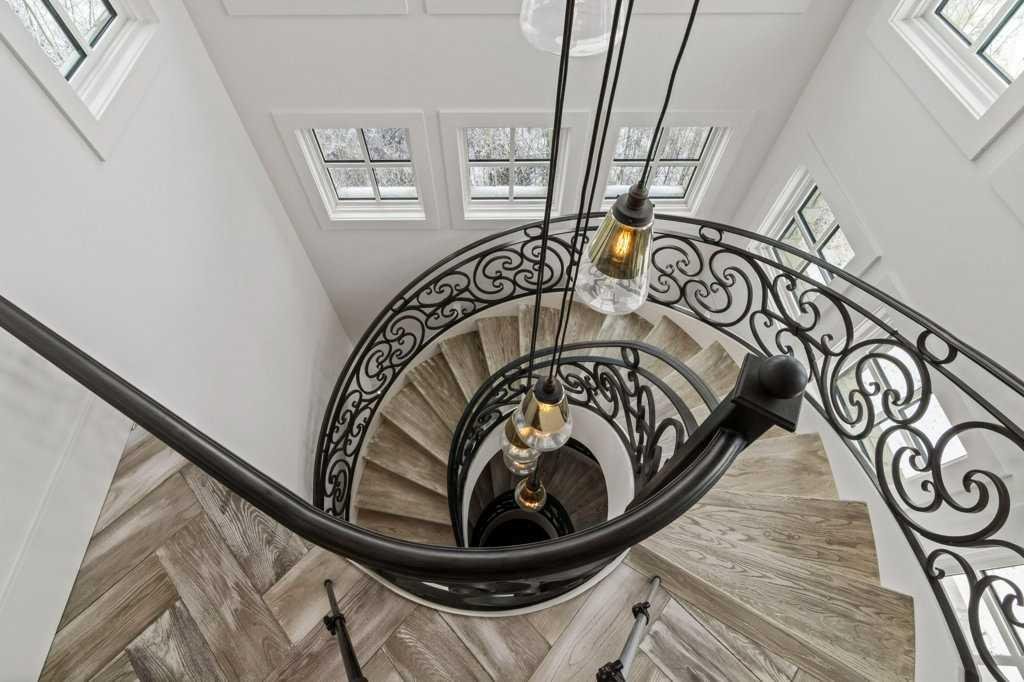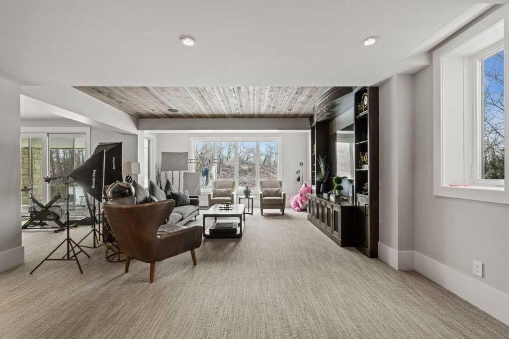Welcome to The Vale, an architectural masterpiece by the renowned McKinley Masters. This one-owner, former show home represents a pinnacle of elegance, privacy, and superior craftsmanship. Situated within the prestigious Silverhorn community, the estate offers a perfect harmony of high-tech modern amenities and the tranquil beauty of Bearspaw’s rolling hills. From the moment you approach the elegant board-and-batten exterior—highlighted by full-bed sandstone, triple-glazed windows, and cedar garage doors—it is clear that every detail has been meticulously curated for the discerning homeowner. The grand entrance sets a tone of opulence, featuring a handcrafted front door with a forged iron canopy that opens into a foyer graced by a custom solid oak armoire. You are immediately captivated by the home’s crown jewel: an award-winning circular staircase with bespoke iron railings. The main floor flows effortlessly through an open-concept layout, where custom herringbone wood floors lead you to a Great Room anchored by a marble feature wall and a built-in gas fireplace. Large windows throughout the level ensure that the breathtaking views of the surrounding treed areas and hills are always the centerpiece of your living space. For the culinary enthusiast, the kitchen is a dream come true. It artfully blends traditional and modern finishes, featuring an oversized marble waterfall island and a secondary prep station that subtly defines the space. ?This kitchen is designed for both high-end catering and intimate family breakfasts. The adjacent formal dining room provides a sophisticated atmosphere for hosting, while the nearby powder room exudes warmth with its custom floating vanity and wood-paneled walls. The upper level is a sanctuary of comfort, characterized by barrel ceilings, accent lighting, and custom iron chandeliers. The master retreat is a true “spa-at-home” experience, featuring floor-to-ceiling windows, a cozy sitting area, and a pop-up TV. The ensuite melts away the stress of the day with heated floors and a cedar-clad walk-in closet. This level also includes ?t?hree additional ?bedrooms? with walk in closets and a family sized laundry room. Steps away the oversized main bathroom is a standout feature in itself, boasting double floating vanities and an impressive private custom shower area. The walk-out basement is a bright and cheerful entertainment hub, complete with a custom bar? and a media area with barn board detailing. Even the functional spaces of this home are extraordinary; the mechanical room is a masterpiece of engineering, connected by a private staircase to an oversized garage. This garage is unlike any other, featuring epoxy-coated heated floors, ample built-in cabinetry, and designer accents. Life in Silverhorn offers a unique blend of nature and technology. With 50% of the surrounding landscape protected, you can enjoy the serenity of untouched beauty just minutes from Calgary.