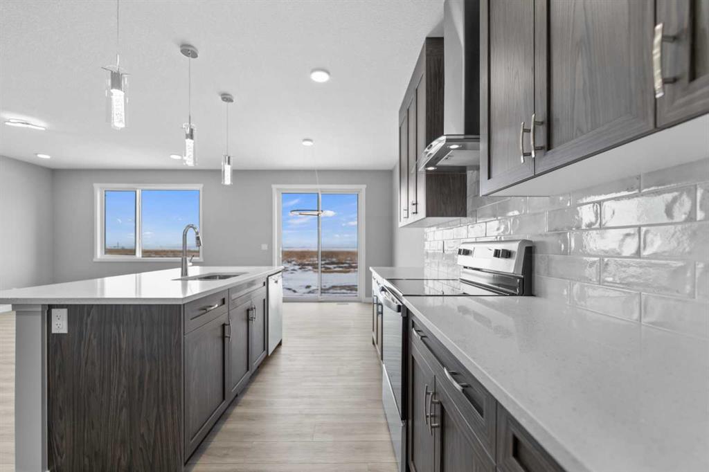 Welcome to your dream home in the community of Rangeview SE. This brand-new, spacious property offers over 2,000 sq. ft. of thoughtfully designed living space, featuring 3 bedrooms, 2.5 bathrooms, an upper-level bonus room, and a one-bedroom legal basement suite, perfect for extended family or rental income potential. A versatile den with a window on the upper floor provides the ideal space for a home office or study. The main floor showcases 9-foot ceilings, an inviting open-concept layout, and an electric fireplace that adds warmth and style to the living area. The extended kitchen counter with quartz countertops, sleek stainless steel appliances, and ample cabinetry make the kitchen a chef’s dream. With a High 9-foot ceilings on both the main floor and basement enhance the sense of space and elegance. Conveniently located just minutes from the hospital, shopping centres, schools, YMCA, and public library, this home offers the ultimate in comfort and accessibility. Don’t miss this incredible opportunity, schedule your viewing today.