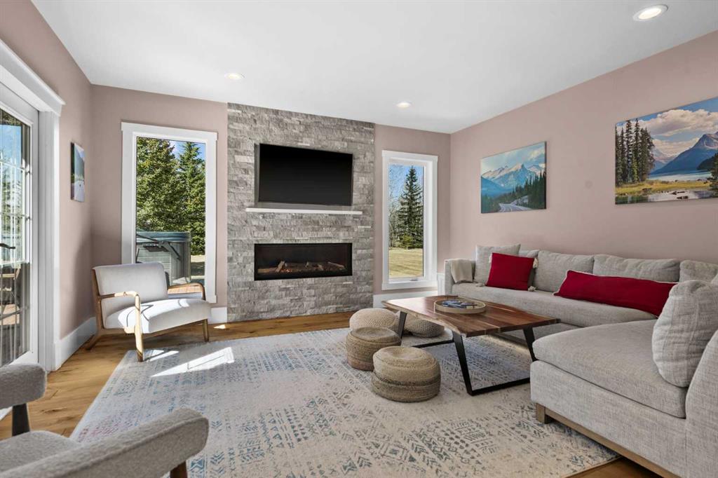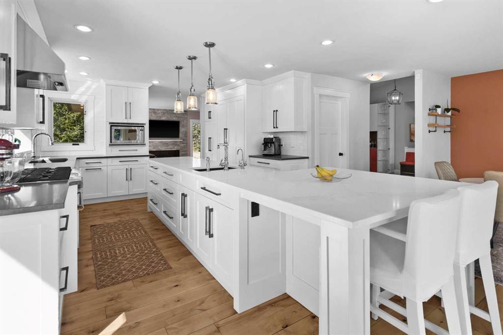 Set within one of Springbank’s desirable, well-established communities, this beautifully updated 2-acre property offers a rare blend of privacy, space, and everyday convenience. Located on a quiet dead-end road and within walking distance to Springbank Community High School, the setting is peaceful, mature, and highly sought after. A paved, illuminated, tree-lined driveway leads to a home that has been extensively updated throughout. The property is thoughtfully equipped with modern infrastructure, including solar power, a backup generator, EV charging, 50A RV service, and smart electrical panels in both the home and oversized, heated, triple garage. Adjacent to the garage is a paved RV space—easily accommodating large trailers or motorhomes. Outdoor living is a highlight of this property, with a massive wraparound composite deck connecting the front entry to the main entertaining space. A swim-spa with current system and a heated gazebo create a private, resort-style setting designed for year-round enjoyment. Inside, the bright, air-conditioned bungalow offers ~4,500 square feet of well-designed living space. Triple-pane windows bring in natural light and frame views of the surrounding landscape. The home includes six bedrooms, a dedicated office, flex room, kitchen and dining area, along with multiple separate living, family, and recreation areas—offering both openness and privacy where desired. The kitchen is well-appointed with high-end appliances, including a Viking gas range and Bosch fridge and freezer, along with quartz surfaces, instant hot water, beverage fridge, and a spacious hidden pantry. All bathrooms have been renovated, flooring has been updated or refinished, and smart lighting allows for customizable settings throughout the home. Mechanical upgrades completed within the past five years include a high-efficiency furnace, two hot water tanks, central A/C, HRV system, humidifier, radon mitigation, and upgraded 200-amp service. From the septic system to the stucco exterior, the home has been comprehensively improved, resulting in a truly turnkey Springbank property that pairs modern innovation with the space, privacy, and character that define acreage living.