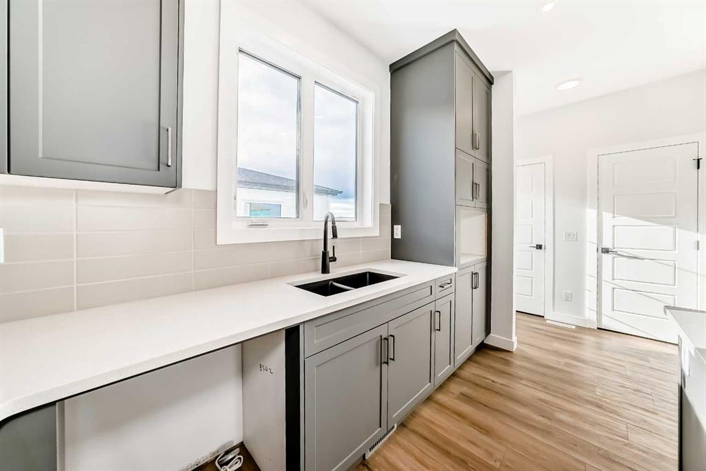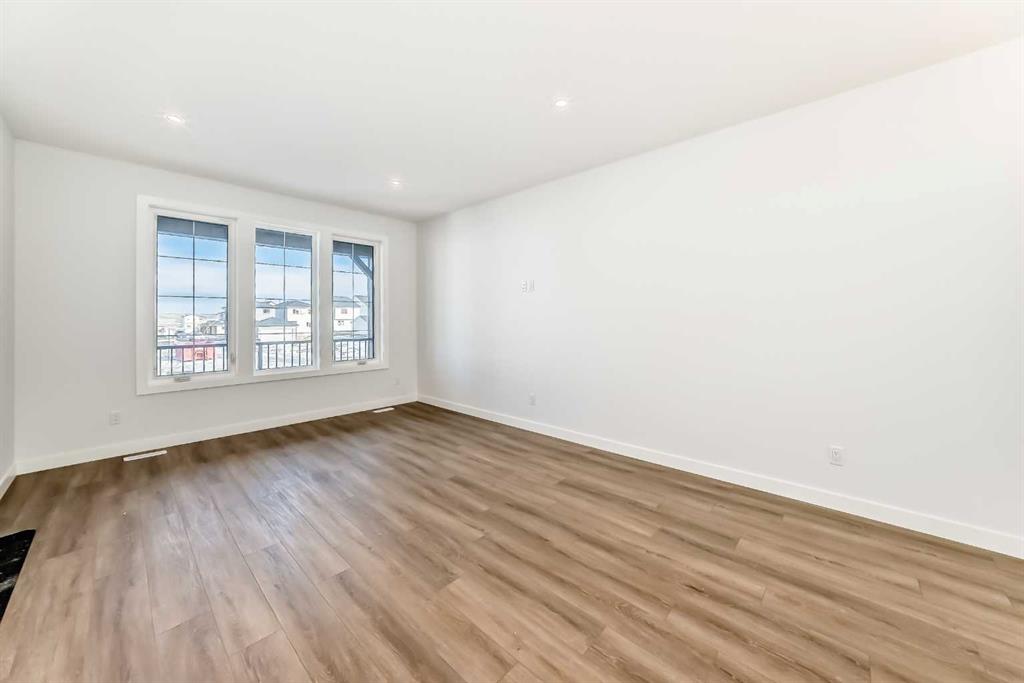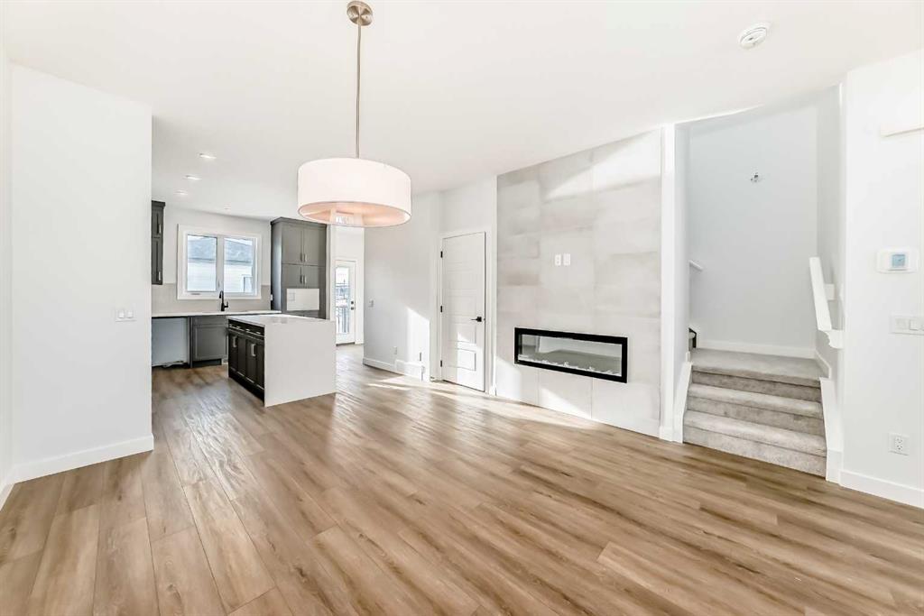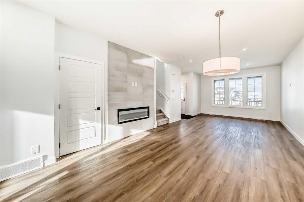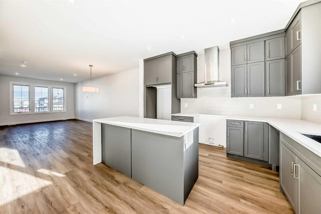 Bright, modern, and thoughtfully designed, this 1,698 sq ft Broadview Homes duplex in Harmony offers a well-balanced layout suited for both everyday living and entertaining. The open-concept main floor brings together the kitchen, dining, and living areas, creating a functional and inviting space filled with natural light. The kitchen features sleek grey cabinetry, light quartz countertops, and a complete stainless-steel appliance package including a gas range, dishwasher, hood fan, and built-in microwave. Clean lines and quality finishes carry throughout the home for a timeless, contemporary feel. Outside, enjoy a spacious rear deck and the convenience of a 20×20 double detached garage.