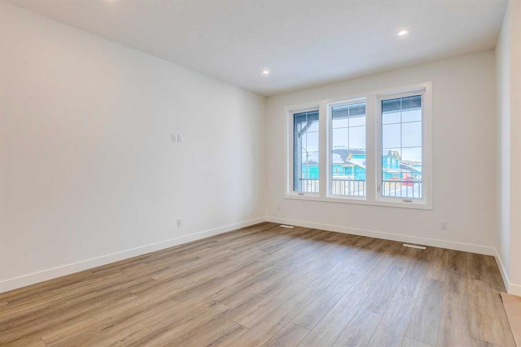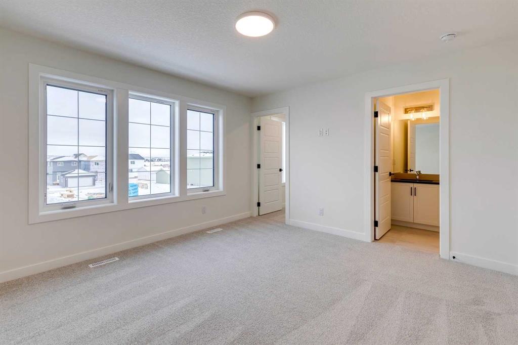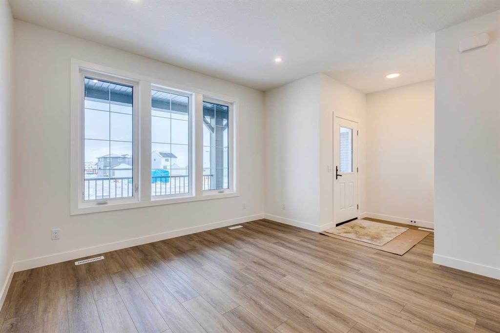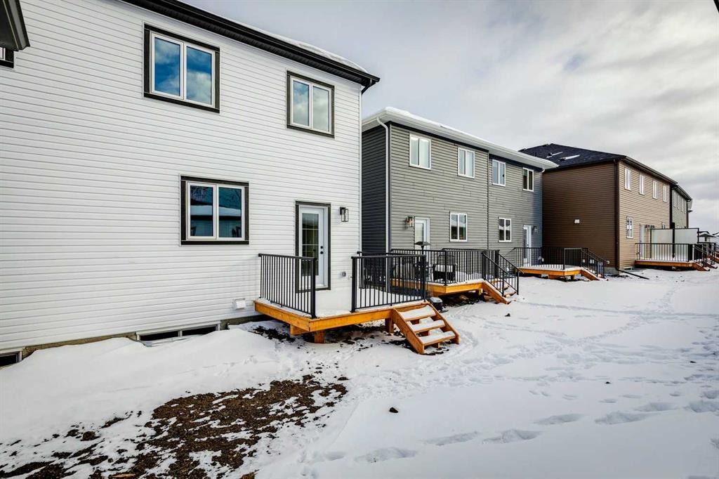 OPEN HOUSE Saturday Jan 17 from 1-3PM. Contemporary design meets everyday ease in this large 1,694 ft² duplex by Broadview Homes in Harmony. The three-bedroom, two-and-a-half-bath design showcases a bright, open plan that connects the kitchen, dining, and living areas for easy everyday living and entertaining. Quality finishes run throughout, with an appliance package that includes a stainless-steel gas range, dishwasher, hood fan, and built-in microwave. Upstairs, the private primary bedroom features a walk-in closet and a well-appointed ensuite, joined by two additional bedrooms and a second full bath. The unfinished basement with a SIDE ENTRANCE is ready for your personal touches including rough-in for a future bathroom. Step outside to a large rear deck that extends your living space for summer relaxation or hosting. Set within vibrant Harmony, with access to lakes, parks, golf, pathways, and world-class amenities, this home offers an exceptional lifestyle in one of Alberta’s most desirable communities. Photos are representative.