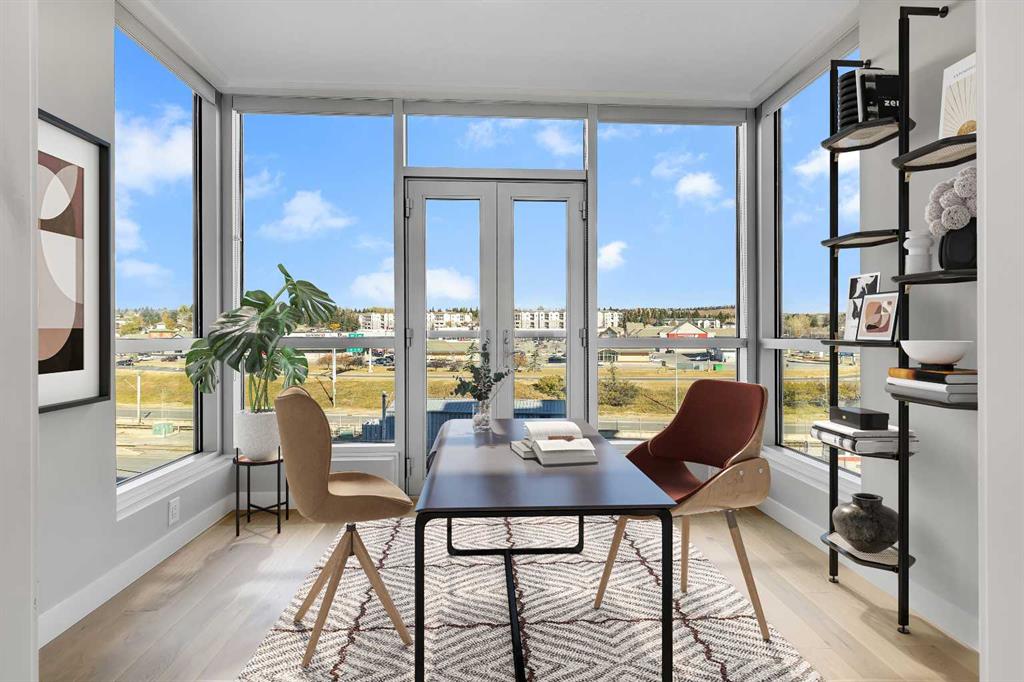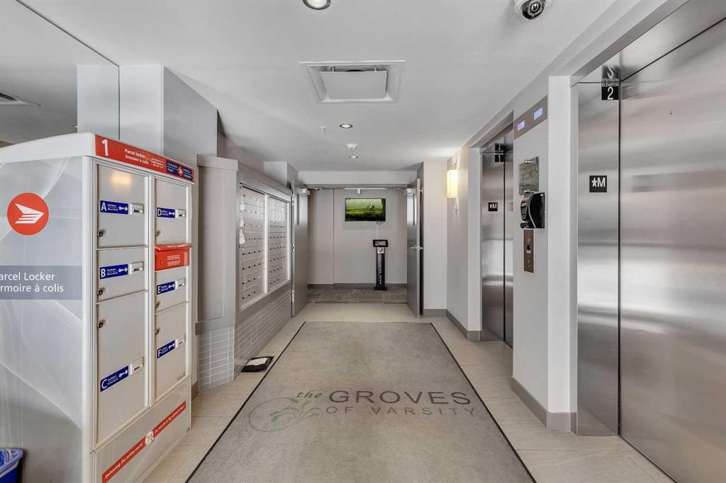 CHECK OUT THE 3D TOUR! Immaculate CORNER UNIT in The Groves of Varsity! As soon as you enter the unit, you will notice the bright and open floor plan including the spacious living and dining areas opening up to the modern kitchen which features granite countertops, ceiling height maple cabinetry, a large detached island, and stainless steel appliances. Additional living space includes a den/office space with huge windows. The primary bedroom includes a large walk through closet and a luxurious ensuite with double sinks. The second bedroom is ideal for guests and an additional den/office space. A second full bathroom, in-suite laundry, and ample storage complete the home. Additional features & updates include fresh paint, new engineered hardwood floors, new carpets, a titled underground parking stall, and a secured storage locker. Enjoy exceptional building amenities including a gym, steam room, owners lounge, rooftop terrace with mountain views and BBQ area, quiet courtyard, and tons of visitor parking. Prime location includes on site professional plaza(doctor’s office, pharmacy, and coffee shop) and across from Dalhousie LRT, Dalhousie Station Shopping Centre, and close to parks and schools. A rare opportunity to own a move in ready, upgraded corner unit in one of Calgary’s most desirable communities! Call your agent for a private showing today!