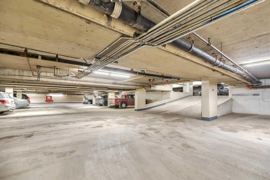 From the moment you pull up to the front entrance of this exclusive riverside residence, you will be impressed. The building is meticulously maintained with extensive upgrades throughout. Superbly located along the Elbow River with immediate access to an extensive route of bike and walking paths, as well as the prestigious Glenco Club, there are no disappointments here. For those lazy weekend afternoons, there is a large array of coffee shops, restaurants and bistros all within a comfortable walking distance. The unit itself is on the 5th floor. Its features include 2 bedrooms and 2 bathrooms, with a West-facing view overlooking a lovely green rooftop terrace. Its main living area is large and inviting with loads of decorating potential. Upgrades include newer mocha-colored laminate flooring, wide baseboards, fresh paint, refaced kitchen cabinets with white quartz countertops…. The indoor swimming pool is a gorgeous, bright, open lounging area. Additional features include a hot tub, a sauna, showers, a full gym, a library and a social room for those times when you want to host colleagues, friends or family for special occasions. You also have the convenience of an on-site car wash and Tennis Courts. Also included is one titled parking space, extra, fully enclosed assigned storage and visitor parking. This is a fabulous opportunity to move into the Riverstone at an entrance level
