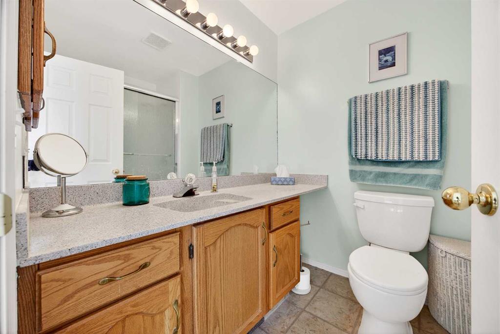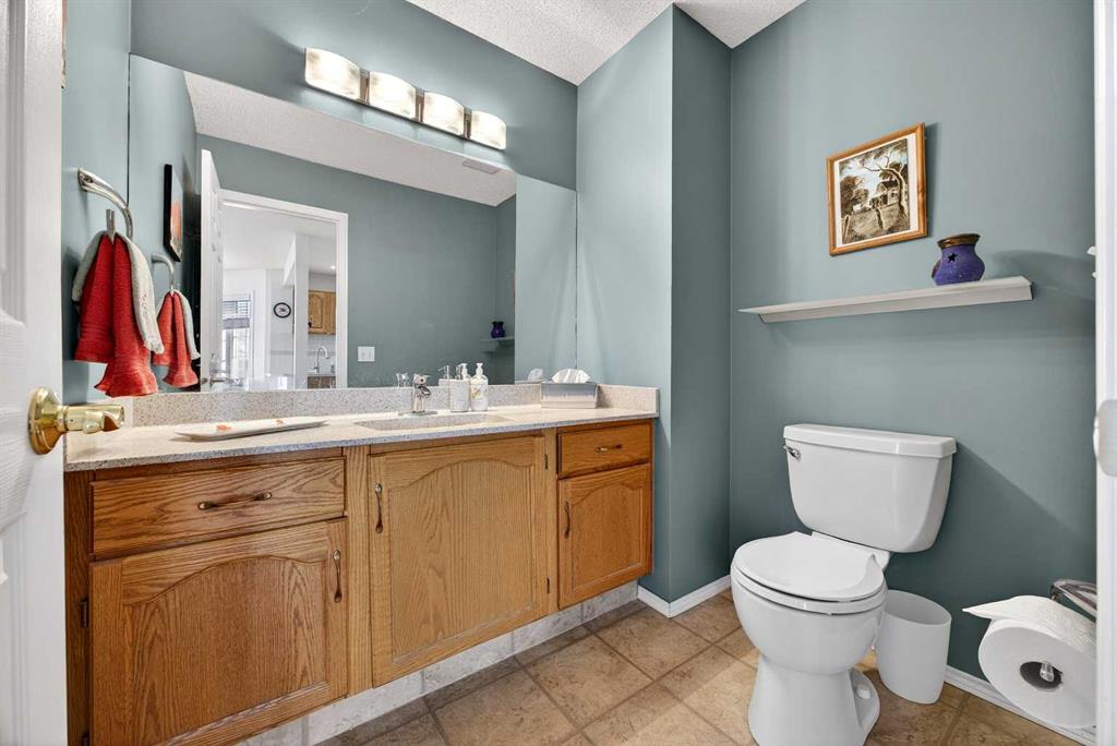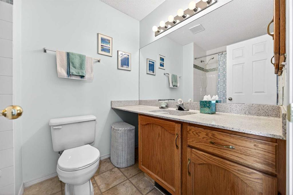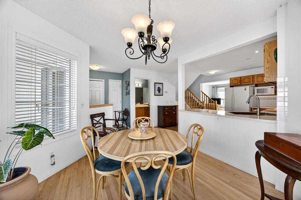 SUNNY END UNIT awaits! This 2-storey, 3-bedroom townhome is an amazing find. Main floor with OAK HARDWOOD floors, new windows (2019) bring in in SOUTH and WEST sunlight. Lots of room for your dining table and entertaining. Kitchen is in the centre of the floorplan with oak cabinetry, newer sink, new oven(2025),dishwasher (2020), microwave(2019), lots of task lighting, room for stools at the counter. SPACIOUS living room with GAS FIREPLACE flanked on each side by lovely windows door to your sunny SOUTH deck, and no neighbours behind. 2-piece powder room, pantry, large closet completes the main floor. Upstairs are three generous-sized bedrooms. Primary is large enough for KING bed, 3-piece ENSUITE w/new shower (2019) and mountain VIEW. Second bedroom also large enough for KING bed! Third bedroom with laminate flooring could also be office or craft room. Fully FINISHED BASEMENT has LOADS of STORAGE, flex room, LAUNDRY w/SINK, and REC ROOM. PolyB has been FULLY REMOVED (2025)! HWT (2019). All this with a front ATTACHED GARAGE, extra parking on the DRIVEWAY, in a well run condo. Welcome to Citadel Terrace: a family-friendly complex surrounded by greenspace with easy access to transit, schools and shopping.
