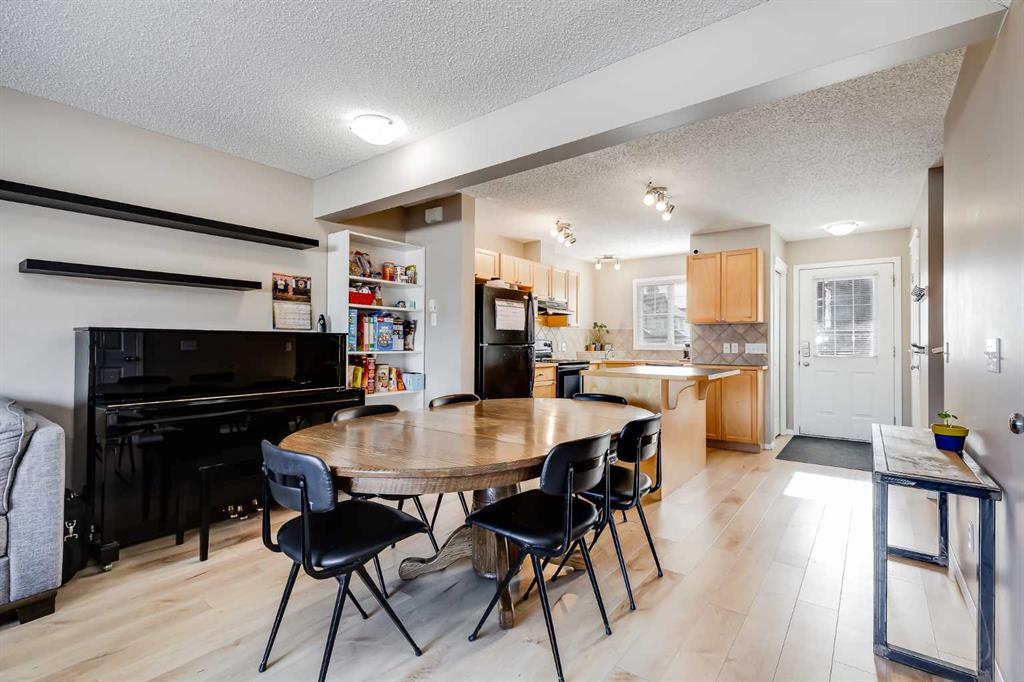 Set within the welcoming community of Sagewood, this 3 bedroom townhome offers a functional layout and room to grow in a family-oriented complex. An open floor plan creates easy flow on the main level, where wide plank durable flooring adds both style and practicality for busy households. Oversized rear windows draw in natural light while direct access to the patio encourages seamless indoor and outdoor living. Centrally positioned, the dining area connects the living space and kitchen for effortless conversation and everyday convenience. Well laid out for efficiency, the kitchen features a centre island with breakfast bar seating that naturally becomes the gathering place for casual meals, homework time or visiting with friends. A tucked away powder room completes the main level for added comfort and privacy. Upstairs, the primary bedroom includes dual closets to simplify daily routines, while 2 additional bedrooms provide flexibility for children, guests or a dedicated home office. A 4-piece bathroom serves the upper level with clean, practical design. The unfinished basement space awaits your creativity, offering the opportunity to expand living space as needs evolve. Outside, a rear patio creates an inviting setting for summer barbeques and evenings spent unwinding, while the shared green space provides grassy space for kids to play and enjoy the outdoors. Assigned parking is conveniently located out front and visitor parking throughout the complex makes hosting simple. Parks, everyday shopping and amenities are all within easy reach, while walking distance to Ralph McCall Elementary Grades K-5 & CW Perry Grades 5-8 adds exceptional convenience for families. Thoughtful design, future potential and a connected setting come together to create a home that adapts easily as life evolves!