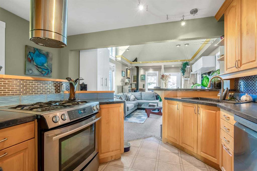 This bright and cozy home features two bedrooms upstairs and one bedroom in the lower level (could also be a family room), two bathrooms, fully fenced yard, a greenhouse, a wood stove, and a double detached garage. The tastefully landscaped yard offers a cozy and private outdoor sitting area.