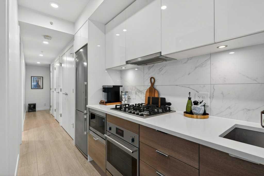 Location, location, location! Welcome to Waterfront, a premier riverfront community, in an exquisite complex perfectly positioned along the Bow River. Views, nature, accessibility, convenience, this location has it all. One of the best downtown locations there is! This well-designed residence offers just under 500 sq ft of stylish living space, featuring one bedroom and one full bathroom in a bright, contemporary layout. The moment you step inside, you’ll appreciate the natural light pouring through the west-facing windows, creating a warm and inviting atmosphere throughout the home. Durable laminate flooring flows seamlessly through the open-concept living space. The modern kitchen is finished with a clean blend of white and wood cabinetry, quartz countertops, and stainless steel appliances, offering both function and timeless appeal. The living room extends out to a private balcony—an ideal spot to relax and enjoy sunny summer evenings.