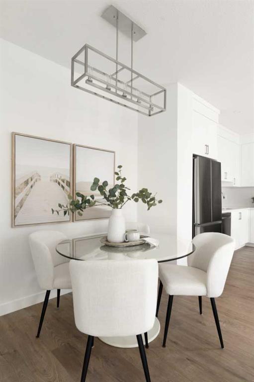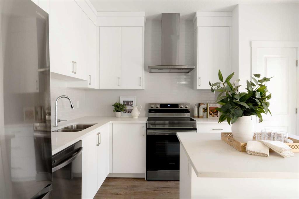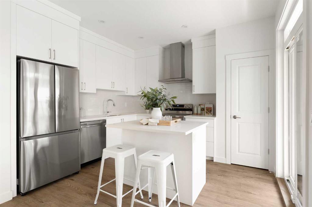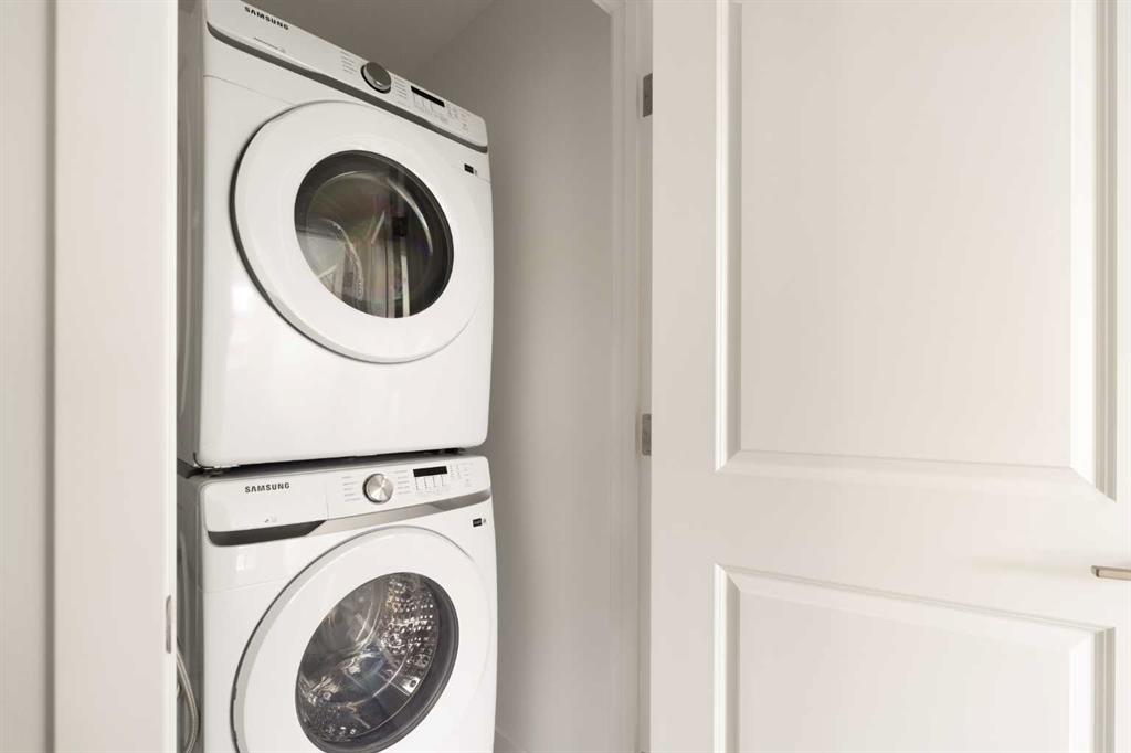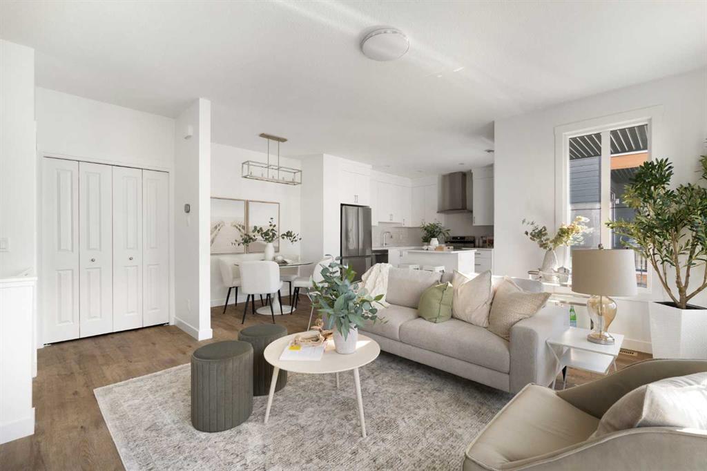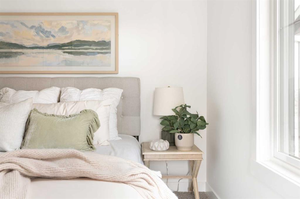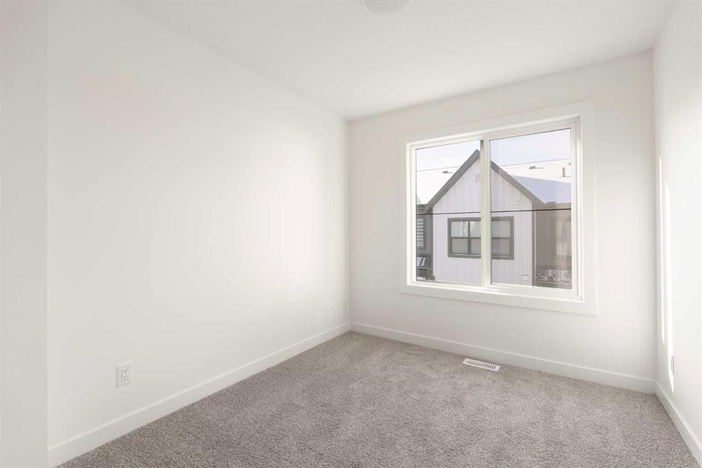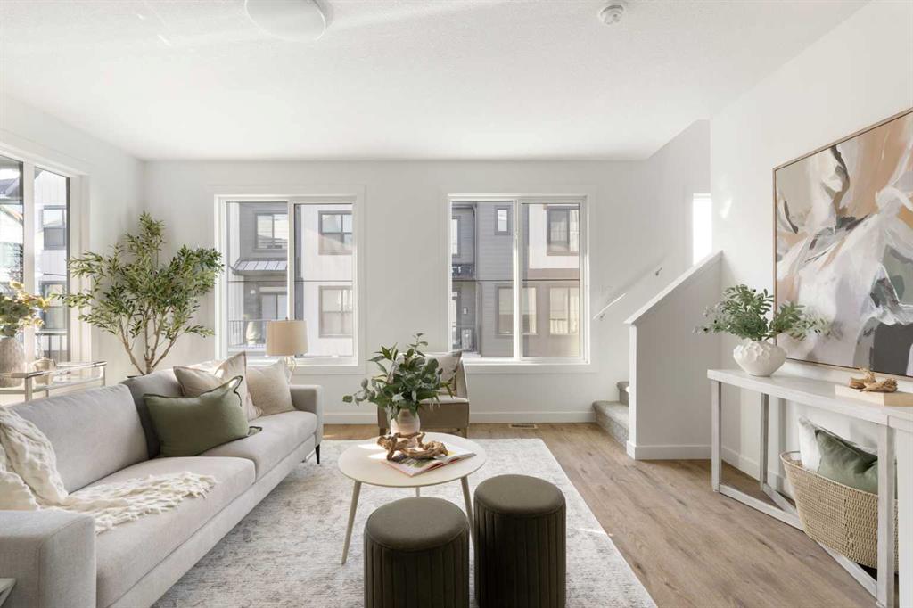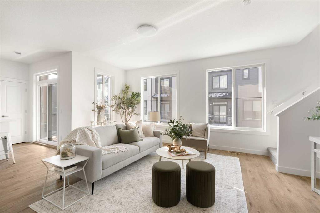 The beautifully finished ‘Armstrong’ by Brookfield Residential is now available in the sought-after community of Rockland Park. This brand-new townhome is thoughtfully designed and extensively upgraded, offering 3 bedrooms, 2.5 bathrooms, and a private double attached garage. The open-concept main floor showcases a timeless white kitchen featuring full-height cabinetry, quartz countertops, and a central island with seating, along with a premium stainless-steel appliance package including a chimney hood fan, built-in microwave and upgraded range. The kitchen flows seamlessly into the dining and living areas, creating an ideal space for both everyday living and entertaining. A wall of west-facing windows fills the main living area with abundant natural light throughout the day. The main level is complete with a west-facing balcony which is perfect for capturing sun through the warmer months and includes a BBQ gas line. On the upper level, the spacious ~11′ x 12′ primary bedroom offers a walk-in closet, private ensuite with walk-in tiled shower, and its own private balcony. Two additional bedrooms, a full bathroom, and a conveniently located laundry area complete the upper level. The lower level features a double attached garage, providing secure parking and ample storage year-round. Additional upgrades throughout create a beautiful and inviting living space that you’ll be proud to live and entertain in. Completing the home is a rough-in for central A/C – making future installation a breeze. If you’re searching for a brand-new townhome in Calgary, this is an exceptional opportunity. The home includes a full builder warranty plus Alberta New Home Warranty, all within the vibrant and growing community of Rockland Park.