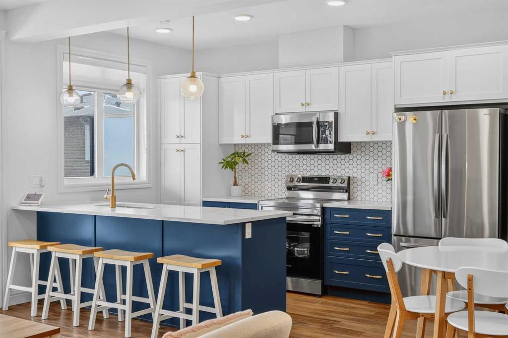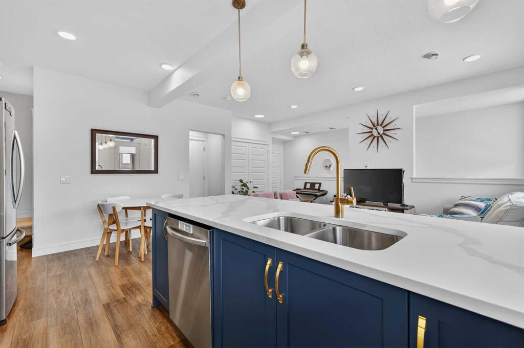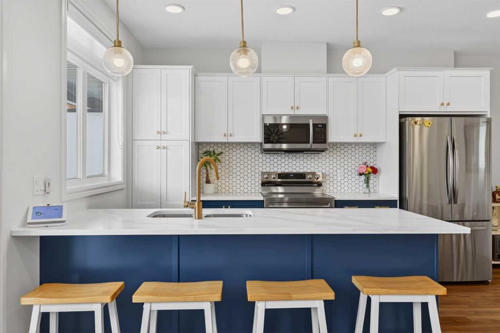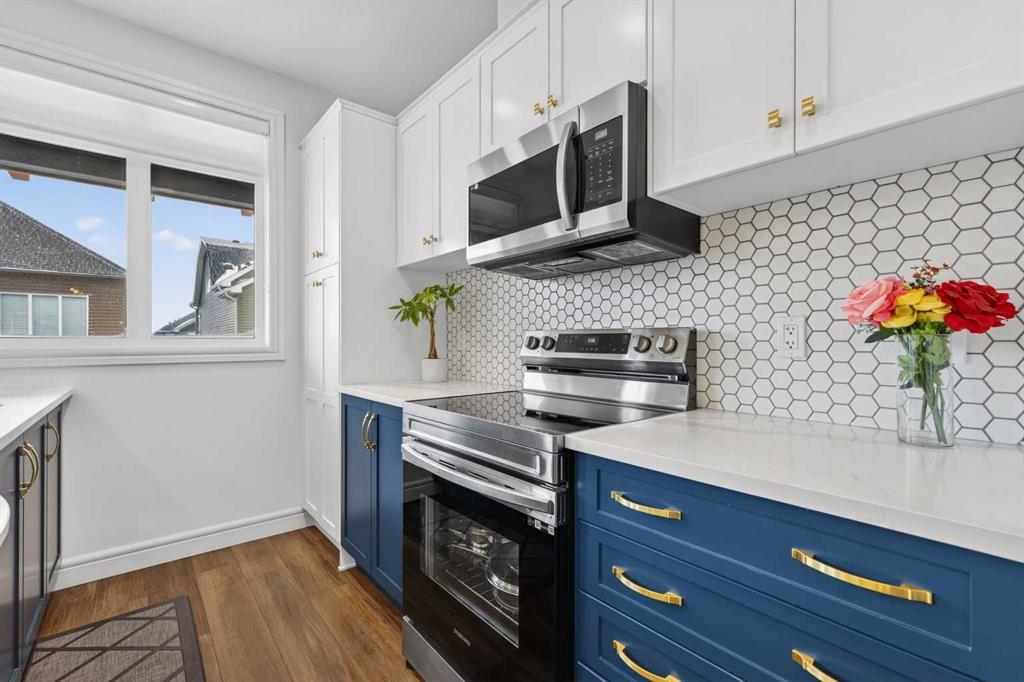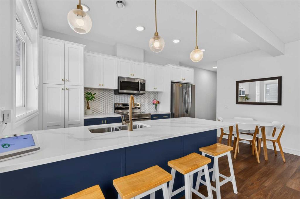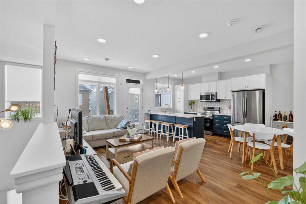 QUICK POSSESSION | THREE BEDROOMS | INDOOR PARKING – TWO BALCONIES This trendy and spacious three-storey townhome in the desirable community of Savanna offers outstanding value, a stylish modern design, and a convenient location close to transit, shopping, schools, walking paths, green spaces, dog parks, Metis Trail, Airport, and so much more. Designed for both comfort and functionality, this home is ideal for professionals, families, or investors looking for low-maintenance living in a vibrant urban setting. The entry-level welcomes you with a front foyer and important security with privacy. The upper main level features an open-concept living space with luxury vinyl plank flooring and abundant natural light, creating a warm and inviting atmosphere. The spacious living room flows seamlessly into the well-appointed kitchen and dining area, making this home perfect for relaxing evenings or entertaining guests. The kitchen is a true standout, featuring white with blue accent shaker-style cabinetry, quartz countertops, a stunning tile backsplash, upgraded stainless steel appliances, and a dramatic peninsula island with a flush eating bar and undermount sink. Just off the front living area, a sizeable east-facing balcony offers the ideal space for outdoor enjoyment with a covered area and peaceful prairie views. Upstairs, the home continues to impress with three generously sized bedrooms. The primary bedroom offers a private en-suite and oversized closet. The upper floor also features a laundry closet with a stacked washer and dryer. The main primary suite is thoughtfully designed and includes an upper east-facing balcony. This beautiful home combines contemporary aesthetics with everyday practicality, showcasing a modern décor palette, smart layout, and quality finishings throughout. With low-maintenance living, low condo fees of $208, thoughtful upgrades, and unbeatable convenience, this property offers a fantastic opportunity to move into a vibrant and growing community. Savanna is more than a neighbourhood—it’s a lifestyle. Live healthy and connected in a thriving, walkable community where you’re minutes from medical, green spaces, transit, and the upcoming LRT AIRPORT extension. Whether you’re commuting, working remotely, or enjoying your downtime, Savanna offers it all. A spring 2026 possession date is available—don’t miss your chance to make this stylish townhome your own. Contact your friendly REALTOR® today to arrange your private showing and experience all that this home has to offer!