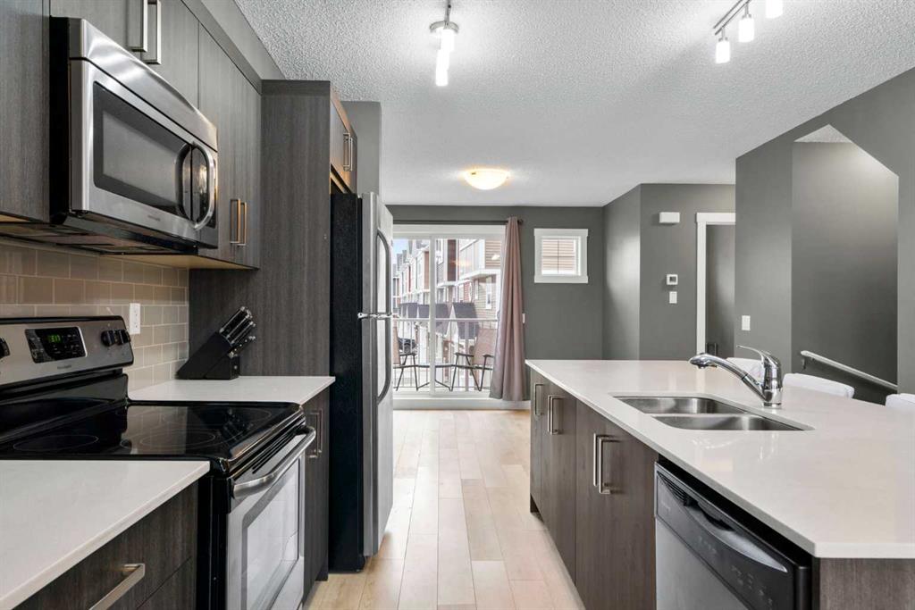 Welcome to a home that offers the ease of townhouse living with the comfort and flow of a thoughtfully designed space. Set within the welcoming community of Kings Heights, this three level property feels both functional and inviting from the moment you arrive. With a driveway for additional parking and an ATTACHED DOUBLE GARAGE for everyday convenience, the approach already hints at the practicality that defines this home. Step inside to a main floor designed for real life. Laminate flooring carries you through a bright, OPEN CONCEPT layout where the living room, dining space, and kitchen connect naturally. The kitchen is finished with QUARTZ COUNTERTOPS, STAINLESS STEEL APPLIANCES, and CABINETRY TO THE CEILING, creating a clean, modern look while maximizing storage. A central island anchors the space, making meal prep and casual conversations feel effortless. At the back of the home, the dining area opens directly to a private balcony, complete with a GAS LINE, perfect for summer evenings and easy outdoor hosting. A well placed powder room and front entry storage keep daily routines organized and comfortable. Upstairs, the layout balances privacy with practicality. The primary bedroom offers a quiet place to recharge, while the second bedroom provides flexibility for guests, children, or a dedicated home office. The configuration of both bedrooms having ensuite bathrooms adds everyday functionality, and UPPER LEVEL LAUNDRY brings convenience exactly where it is needed most. The linen closet ensures there is a place for everything, supporting an uncluttered and relaxed lifestyle. The lower level is focused on utility and ease, featuring interior access from the single attached garage, along with additional storage and mechanical space. This design is especially appreciated during colder months, allowing you to move from car to home with comfort and efficiency. Added features such as a CENTRAL VACUUM SYSTEM enhance the overall livability and long term value. Living in Kings Heights means being part of a well established Airdrie community known for its pathways, ponds, and family friendly atmosphere. Everyday essentials are close at hand, from shopping and dining to nearby schools, parks, and recreation options. Commuters will appreciate the quick connection to Deerfoot Trail (QEII), making travel into Calgary manageable while still enjoying the calm pace of suburban living. This is a home that supports lifestyle and meaningful moments, offering the kind of layout and location that simply makes sense. Come experience the comfort, convenience, and lifestyle waiting for you here!