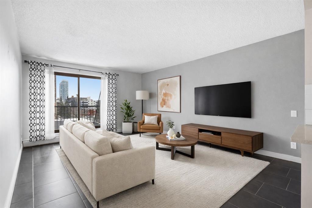 Welcome to Wellington Estates a well managed concrete building in the heart of Beltline offering exceptional value and unbeatable walkability. Perfect for first-time buyers and investors alike. This spacious open concept 1 bedroom 1 bathroom condo offers 630 sqft located on the 5th floor with desirable east-facing views. The unit enjoys open views and beautiful morning light right from your private balcony. This functional layout features quartz countertops, a breakfast bar, built-in wine fridge, and in-suite laundry. With just a few updates there is an excellent opportunity to add value through light cosmetic improvements (few virtually staged photos). Underground parking included. In this well managed building condo fees INCLUDE ALL UTILITIES even electricity providing predictable and cost-effective ownership in a concrete building. Ready for immediate possession. With an excellent walkability score just Steps from 17th Avenue, restaurants, cafes, shopping and the Sunalta LRT just steps away. An outstanding opportunity to secure a Beltline condo at an attractive price. Book your showing today.