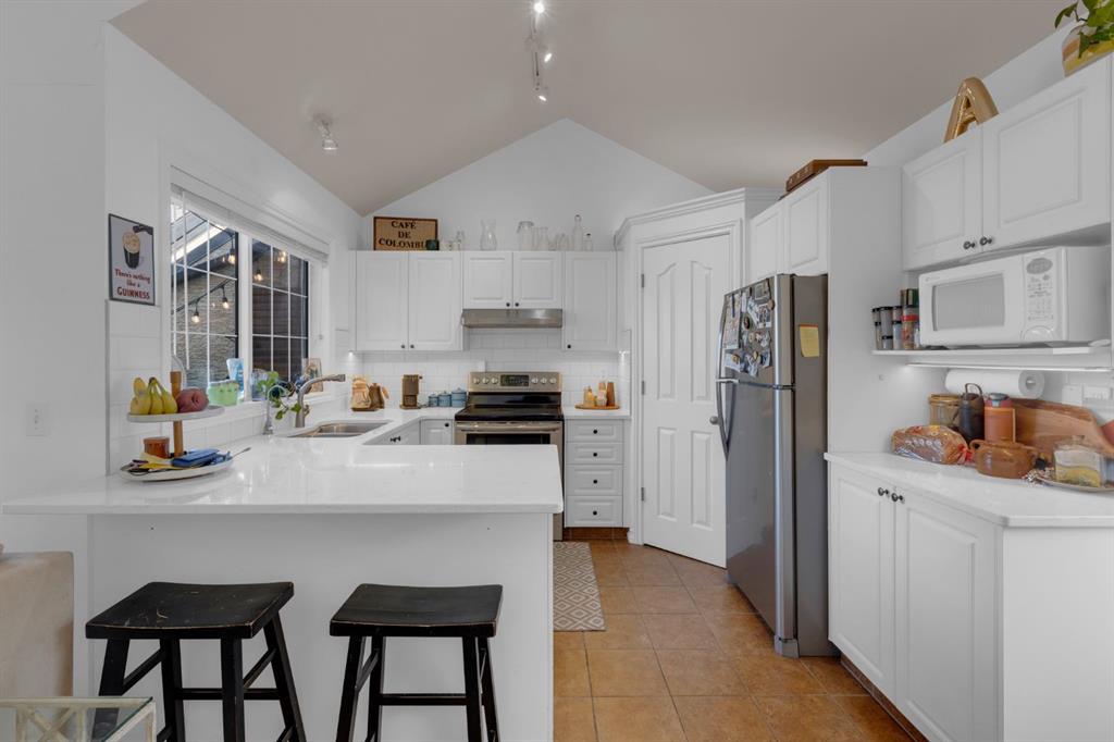 ~Welcome Home ~this beautifully renovated townhome in the highly sought-after community of Mount Pleasant is sure to impress. Tucked within a quiet, pet-friendly complex, this beautifully renovated townhome offers a sophisticated blend of comfort, style, and convenience—ideal for retirees, downsizers, professionals, students, and first-time buyers alike. Located minutes from downtown, Foothills Hospital, the University of Calgary, and SAIT, this exceptional home also provides easy access to the natural beauty of Confederation Park and an extensive network of scenic walking and biking paths. Enjoy the luxury of a truly walkable lifestyle with an abundance of shopping, dining, cafés, and local pubs just steps away. Inside, soaring vaulted ceilings and an airy open-concept layout create an impressive sense of space and light. The thoughtfully designed kitchen is both elegant and functional, featuring expansive quartz counters, abundant cabinetry, a large central island perfect for entertaining, and a convenient corner pantry. The adjacent dining area flows seamlessly into the inviting living room, where a cozy gas fireplace creates a warm and welcoming ambiance. This well-appointed home offers two spacious bedrooms and two full bathrooms. The stunning primary retreat features dual closets and a spa-inspired four-piece ensuite complete with a luxurious soaker tub—your own private sanctuary. The generous second bedroom offers incredible flexibility, making it ideal for a stylish home office, creative studio, wellness room, or comfortable guest suite. Additional highlights include a large private patio, a single attached garage with ample storage options for added convenience. As an exceptional bonus, the condo fees in this well-managed complex include both heat and water, providing outstanding value rarely found in townhome living. Notable updates include; appliances, quartz counters, backsplash, plumbing fixtures & sinks, and paint throughout. Elegant, move-in ready, and perfectly situated, this remarkable property offers an elevated lifestyle in one of Calgary’s most desirable inner-city communities—schedule your private viewing today.