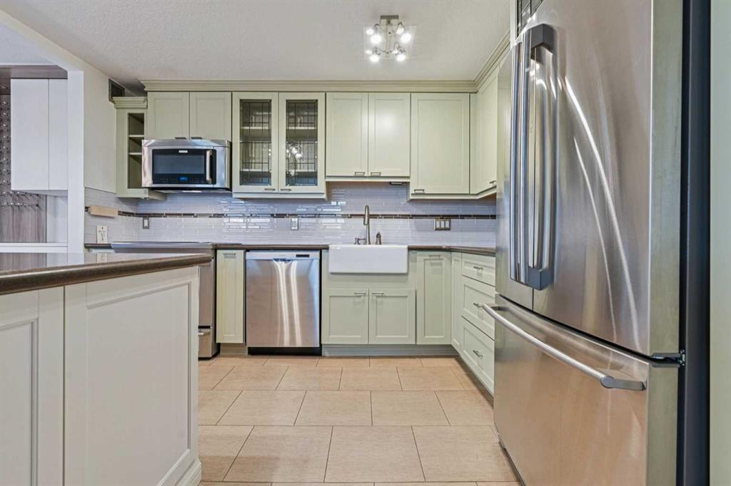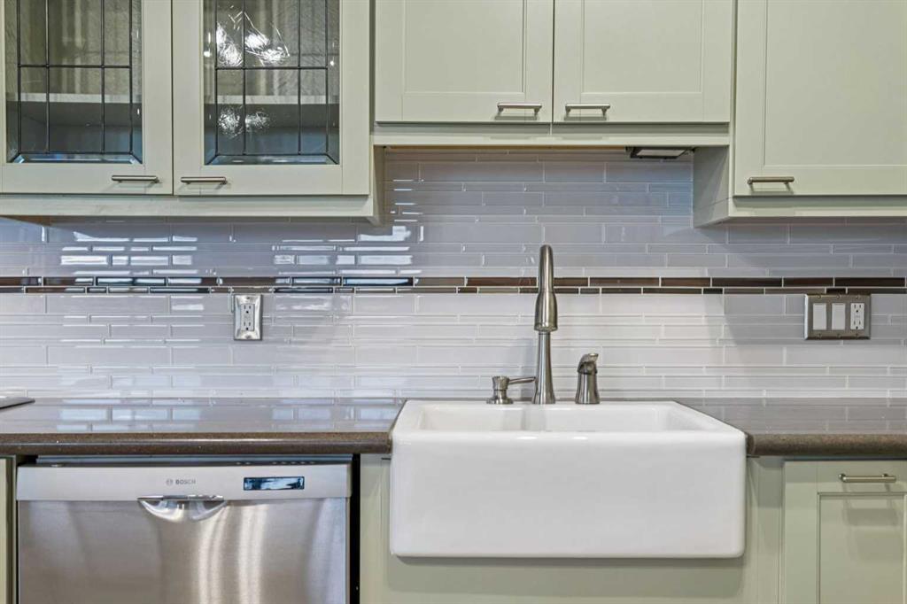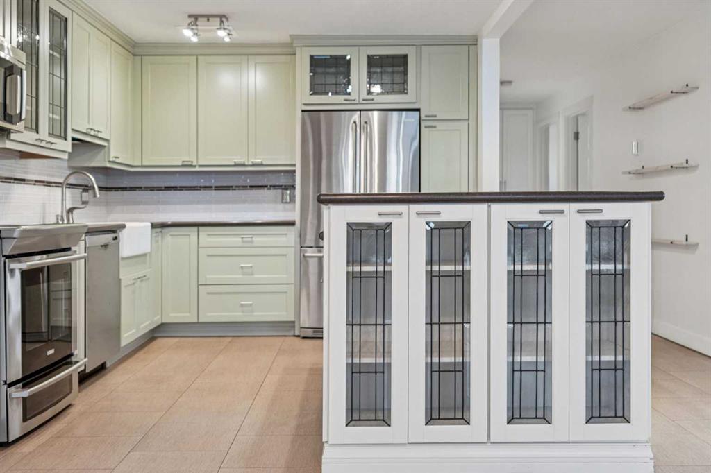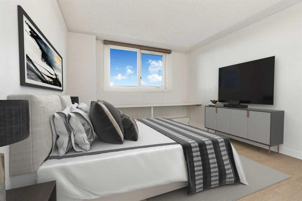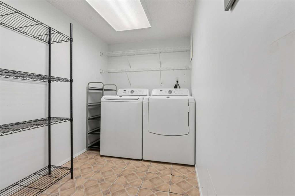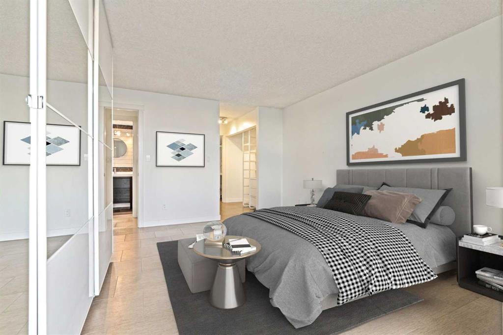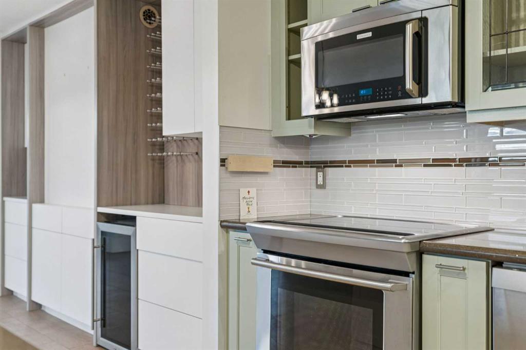 Welcome to an extraordinary top-floor retreat where refined indoor living meets unmatched outdoor space. Situated in a quiet concrete building, this impressive 1,500+ sq. ft. 2 bedroom, 2 bathroom home is finished to an exceptional standard throughout. The heart of the home is a custom Martha Stewart Living island kitchen, complete with stone countertops and premium Electrolux and Bosch appliances. It is very rare to find a custom kitchen of this size and quality! Beautiful appointed from top to bottom. It then flows seamlessly into a bright, open great room anchored by a cozy wood-burning fireplace. The space is very spacious with room for an additional library or seating area. Updated bathrooms, luxury vinyl tile and ceramic flooring, custom built-ins, double closets, and a large in-suite laundry room with abundant storage elevate everyday living. All of this as well as a very spacious office or studio space, solarium style with built-in, bench seating and a wall of windows. Mostly newer windows with custom blinds allow natural light to pour in from every angle. Step outside through two smooth-slide patio doors to a truly rare offering: a 700 sq. ft. penthouse-style wraparound rooftop patio. Designed for privacy and enjoyment, this outdoor oasis features a raised 24’ x 24’ deck with new wood feature walls. There is more unique spaces for dining, lounging or gardening! This patio is ideal for entertaining, BBQs, outdoor workouts, or simply relaxing while taking in sweeping southern sky views. Enjoy an easy-care executive lifestyle with two heated indoor parking stalls, a well-equipped fitness facility with sauna. Perfectly positioned on a peaceful, tree-lined street in the heart of revitalized Windsor Park, just steps to LRT, transit, Chinook Centre, shops, and restaurants. A short bike ride to Stanley Park, the Reservoir, and Elbow River pathways, and only 10 minutes to downtown. Condo fees include heat, water, and sewer. Immaculate, move-in ready, and truly one of a kind—this is elevated inner-city living at its finest.